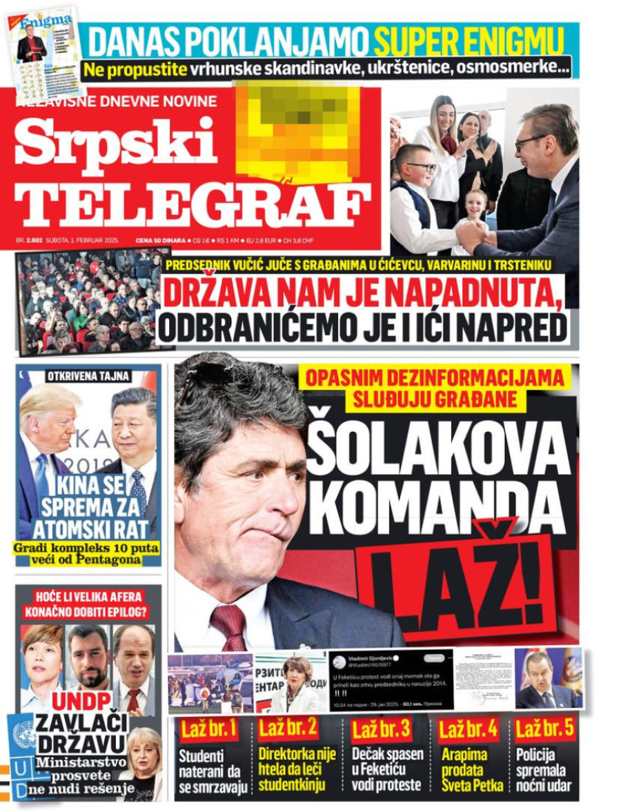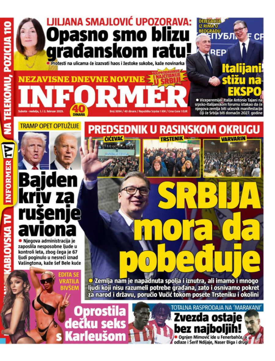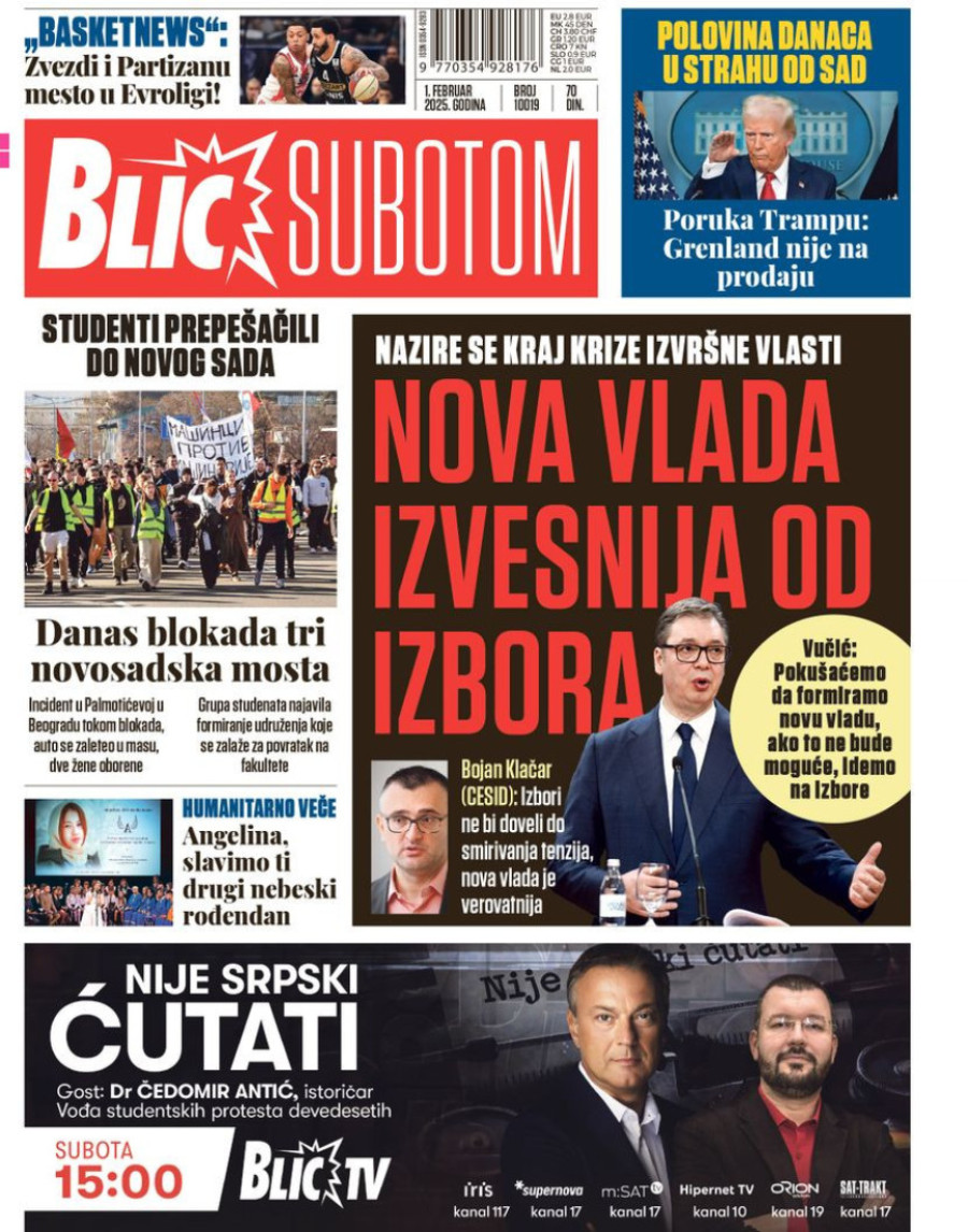 Naslovne strane dnevnih novina: Prelistavanje štampe za 1. februar 2025. godine