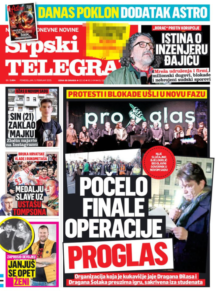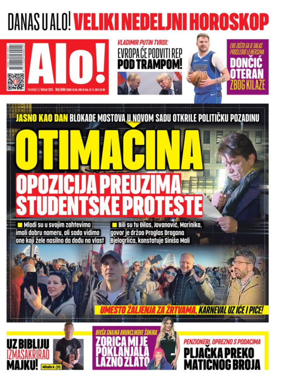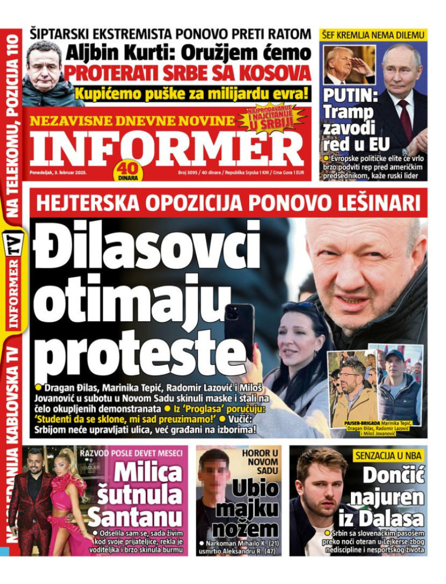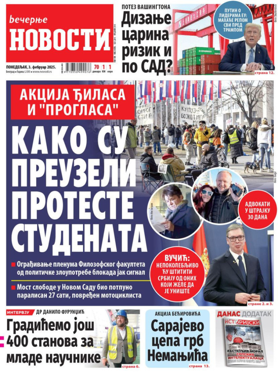 Dnevne novine u Srbiji za ponedeljak 3. februar 2025. godine na naslovnim stranama najavljuju brojne aktuelne društveno-političke teme.