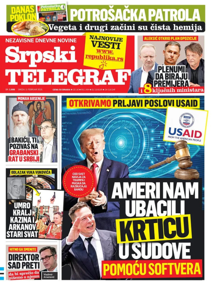 Naslovne strane dnevnih novina: Prelistavanje štampe za 5. februar 2025. godine