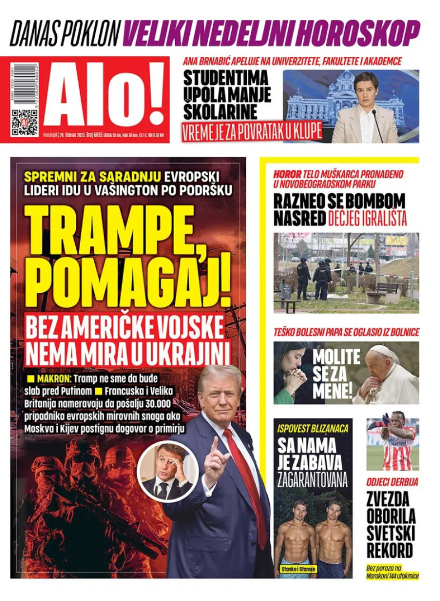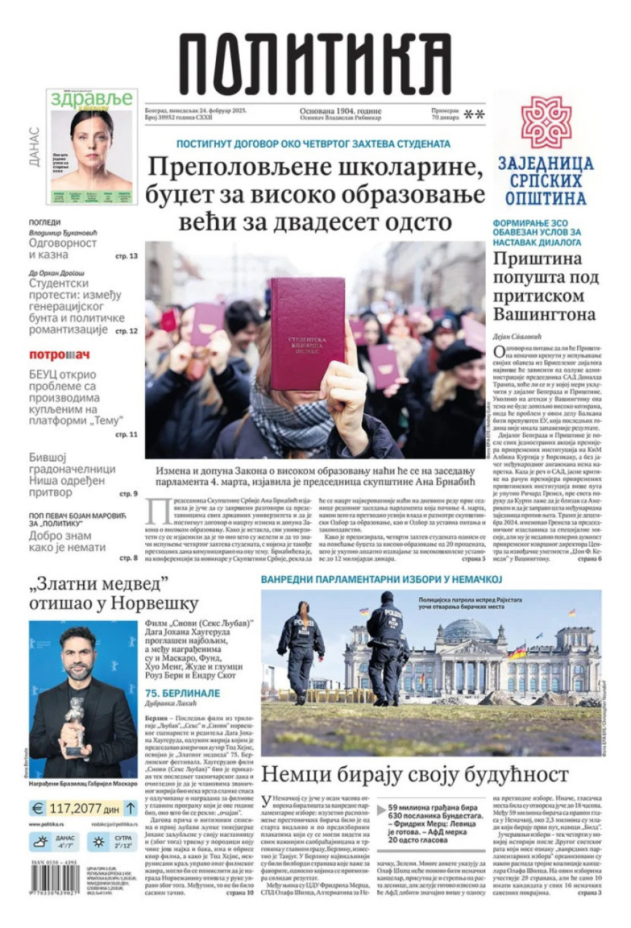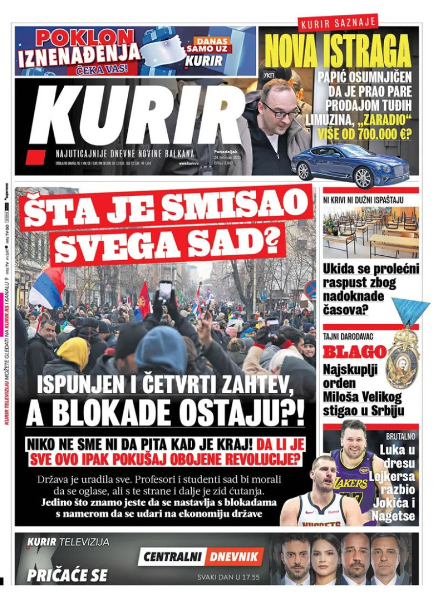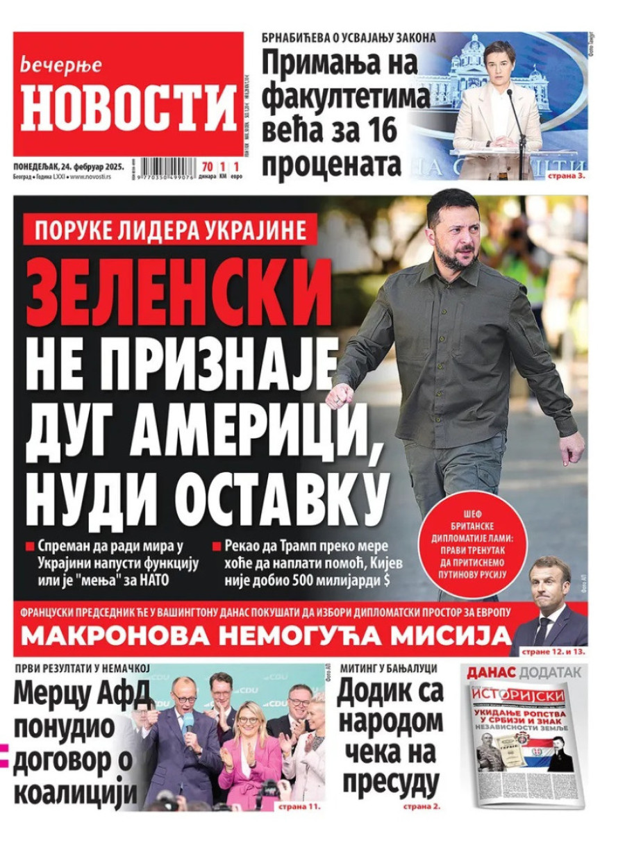Naslovne strane dnevnih novina: Prelistavanje štampe za 24. februar 2025. godine
