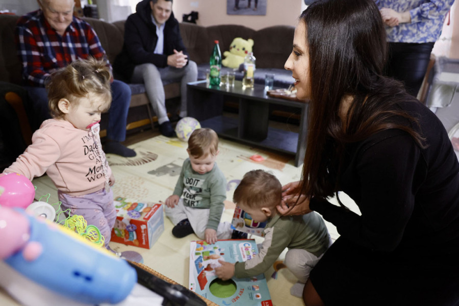 Ona je donela poklone za Davida, Divnu i Bogdana, prve trojke rođene u Brusu posle skoro 20 godina.