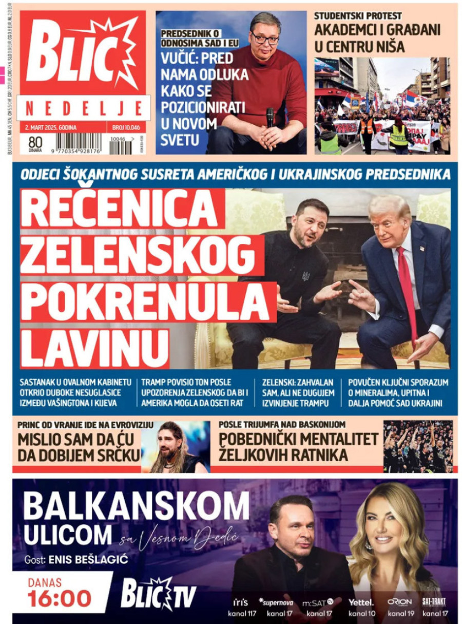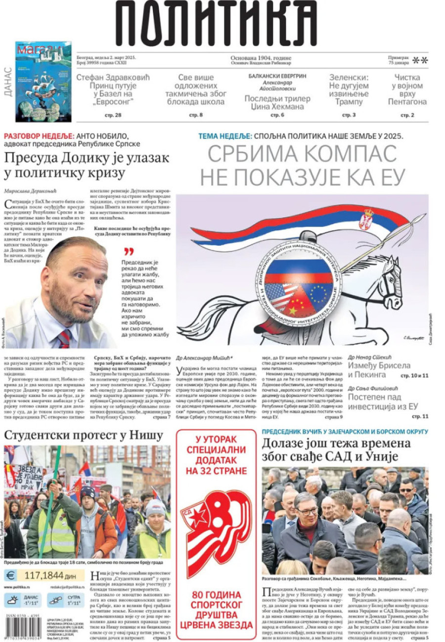 Dnevne novine u Srbiji za nedelju 2. mart 2025. godine na naslovnim stranama najavljuju brojne aktuelne društveno-političke teme.