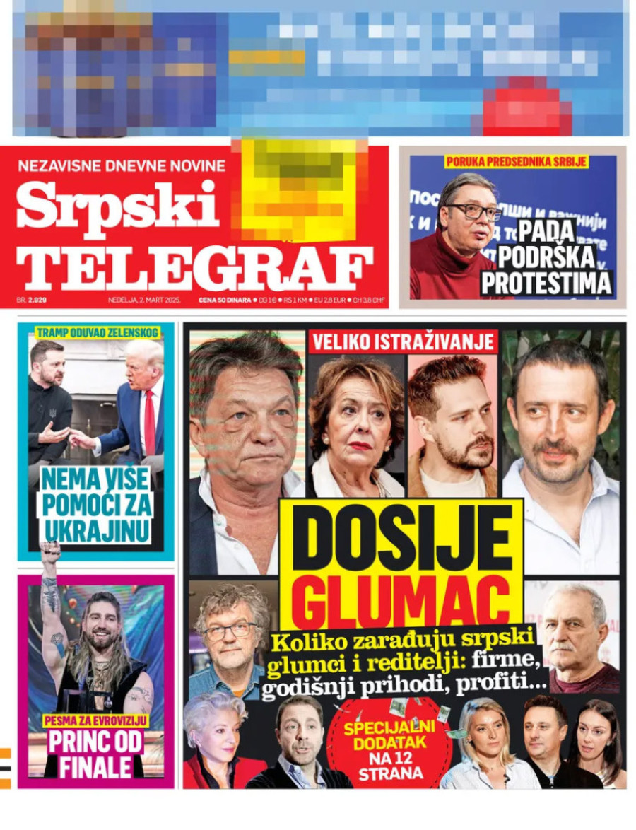 Naslovne strane dnevnih novina: Prelistavanje štampe za 2. mart 2025. godine