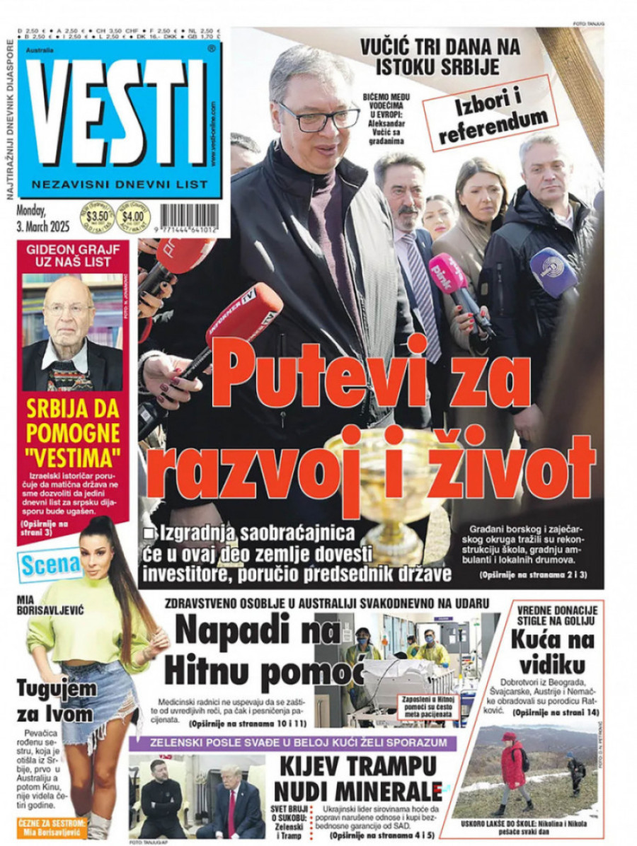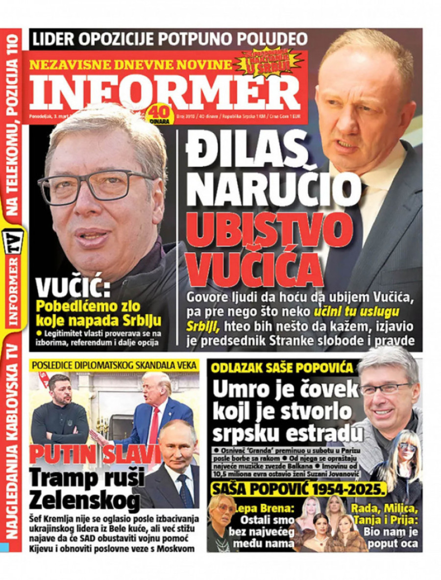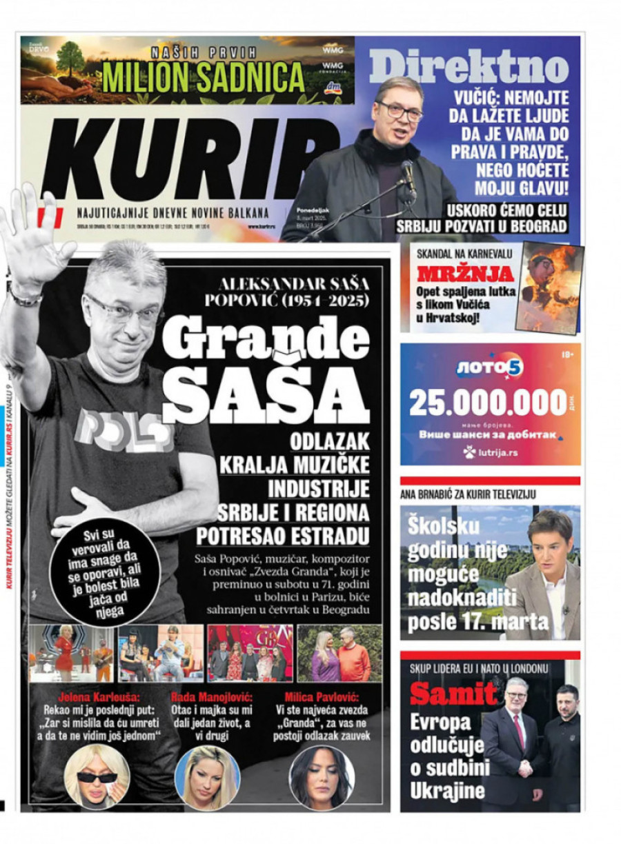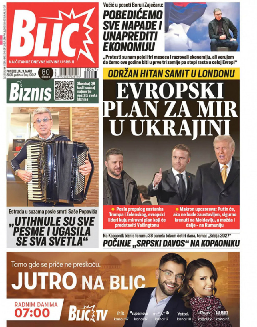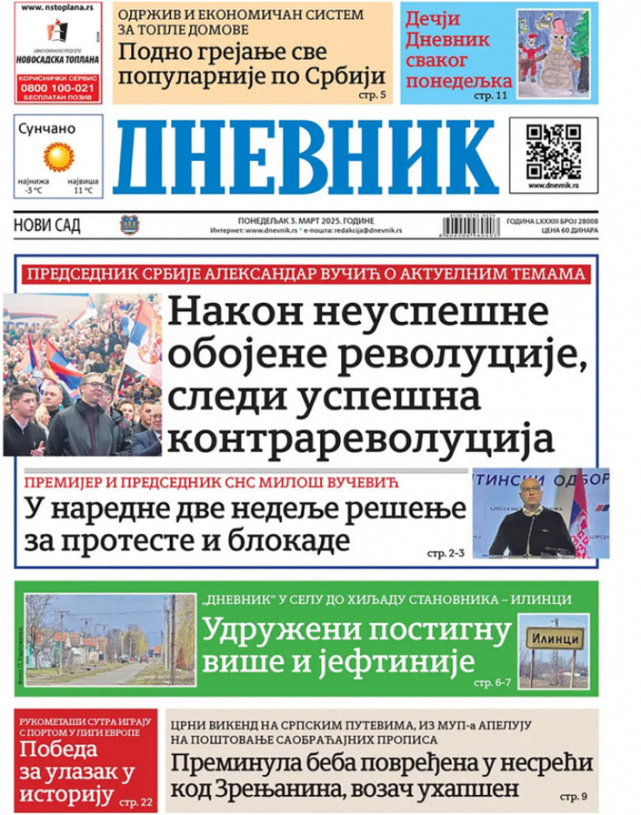 Naslovne strane dnevnih novina: Prelistavanje štampe za 3. mart 2025. godine