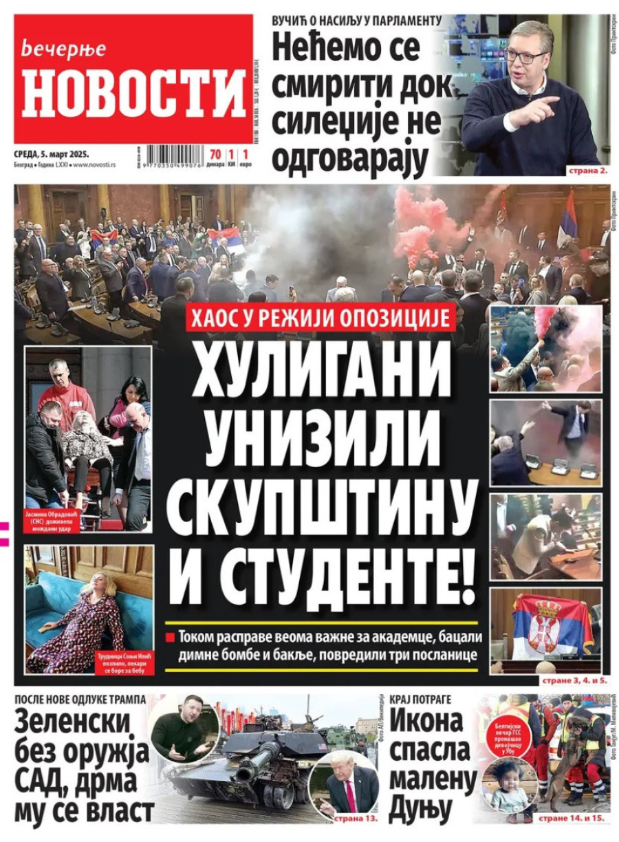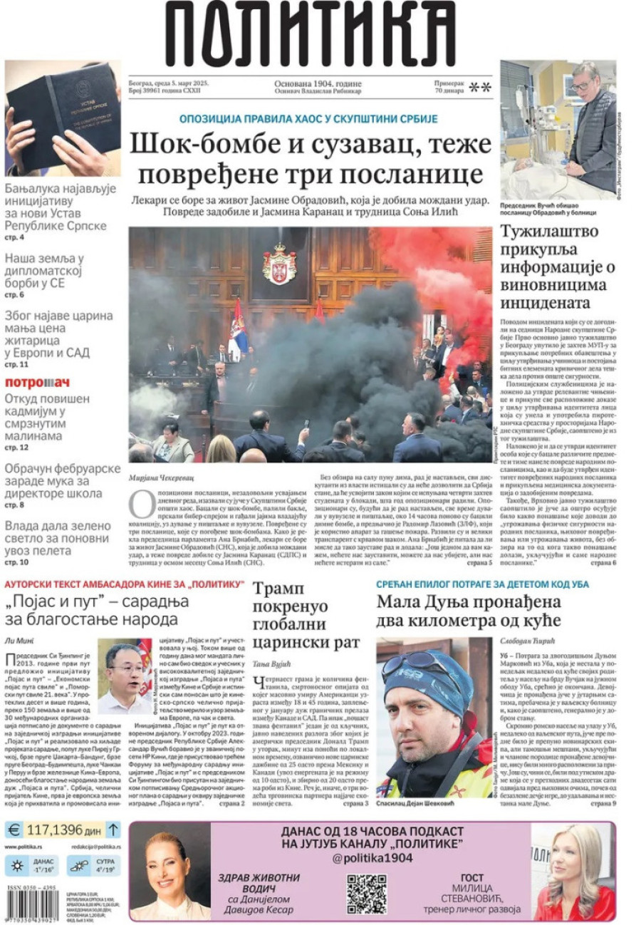 Naslovne strane dnevnih novina: Prelistavanje štampe za 5. mart 2025. godine