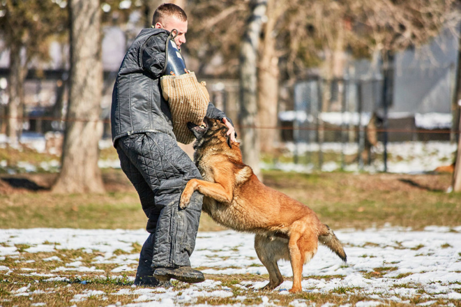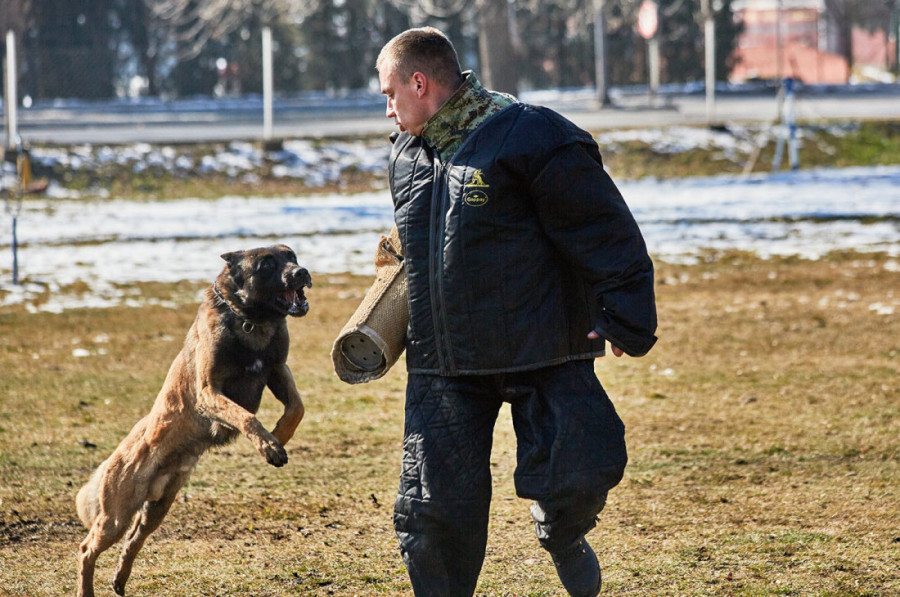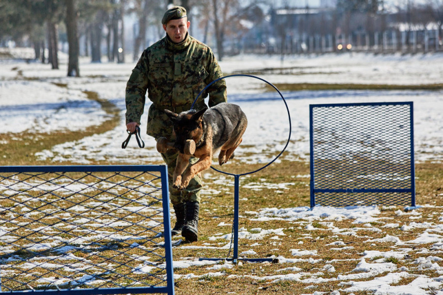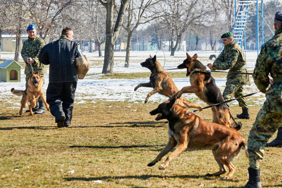 U skladu sa programom obučavanja, vodiči sa službenim psima realizuju raznovrsne vežbe na specijalizovanom poligonu u kasarni "Knjaz Mihailo"