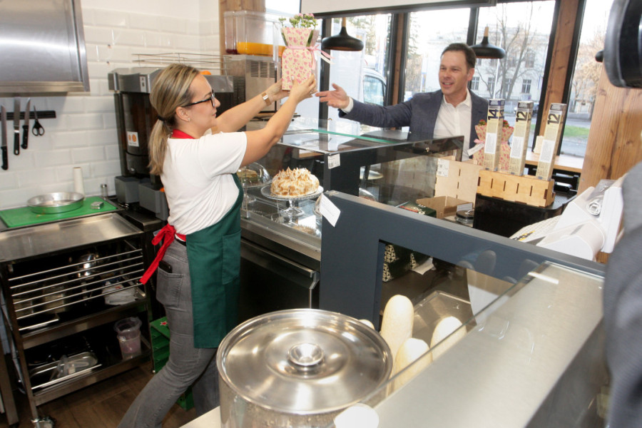 Siniša Mali čestitao je danas svim ženama praznik i posetio radnice u prodavnici "Aroma" na Senjaku