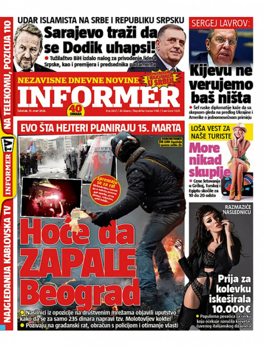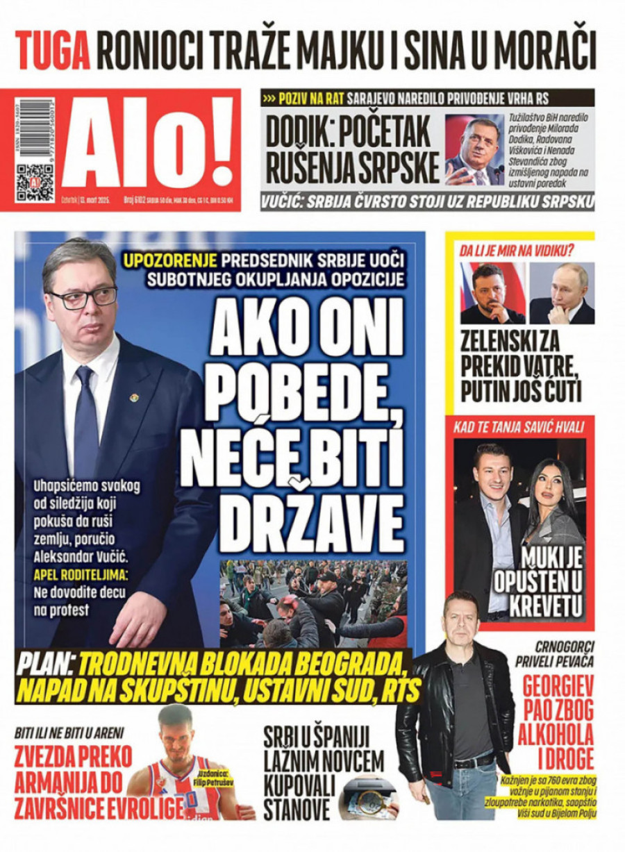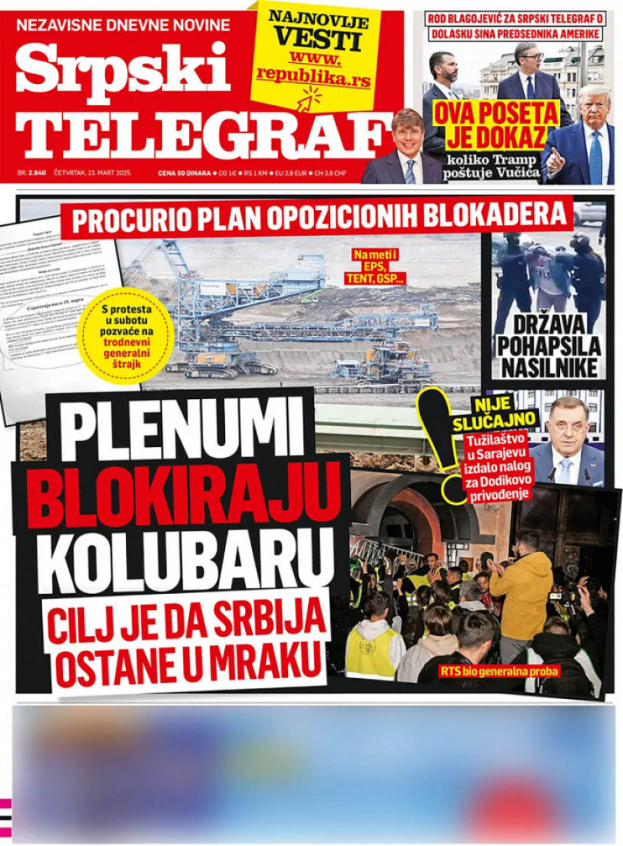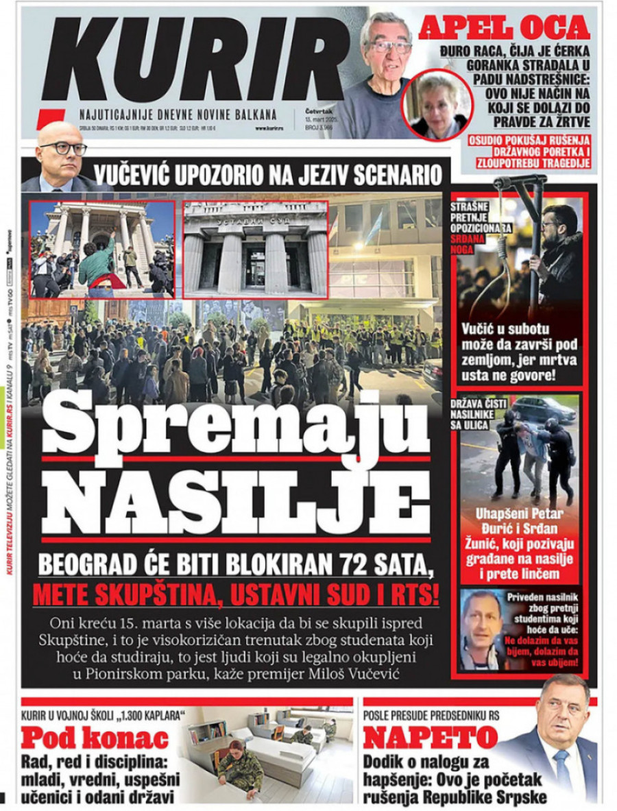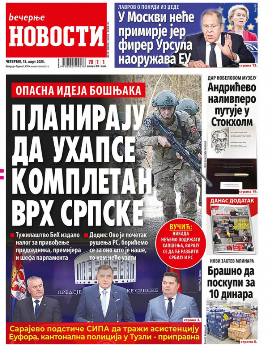Dnevne novine u Srbiji za četvrtak 13. mart 2025. godine na naslovnim stranama najavljuju brojne aktuelne društveno-političke teme.