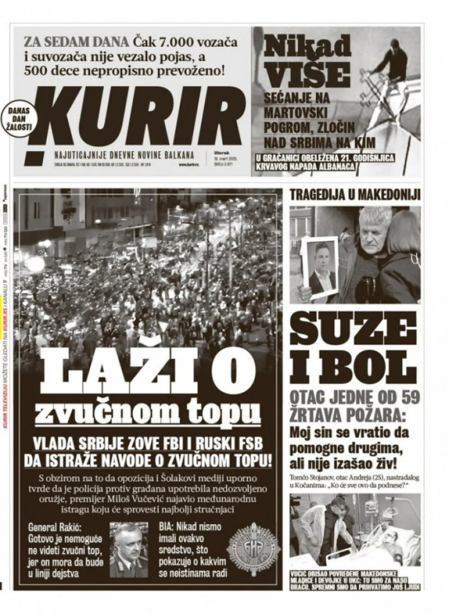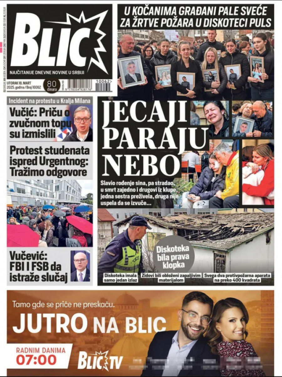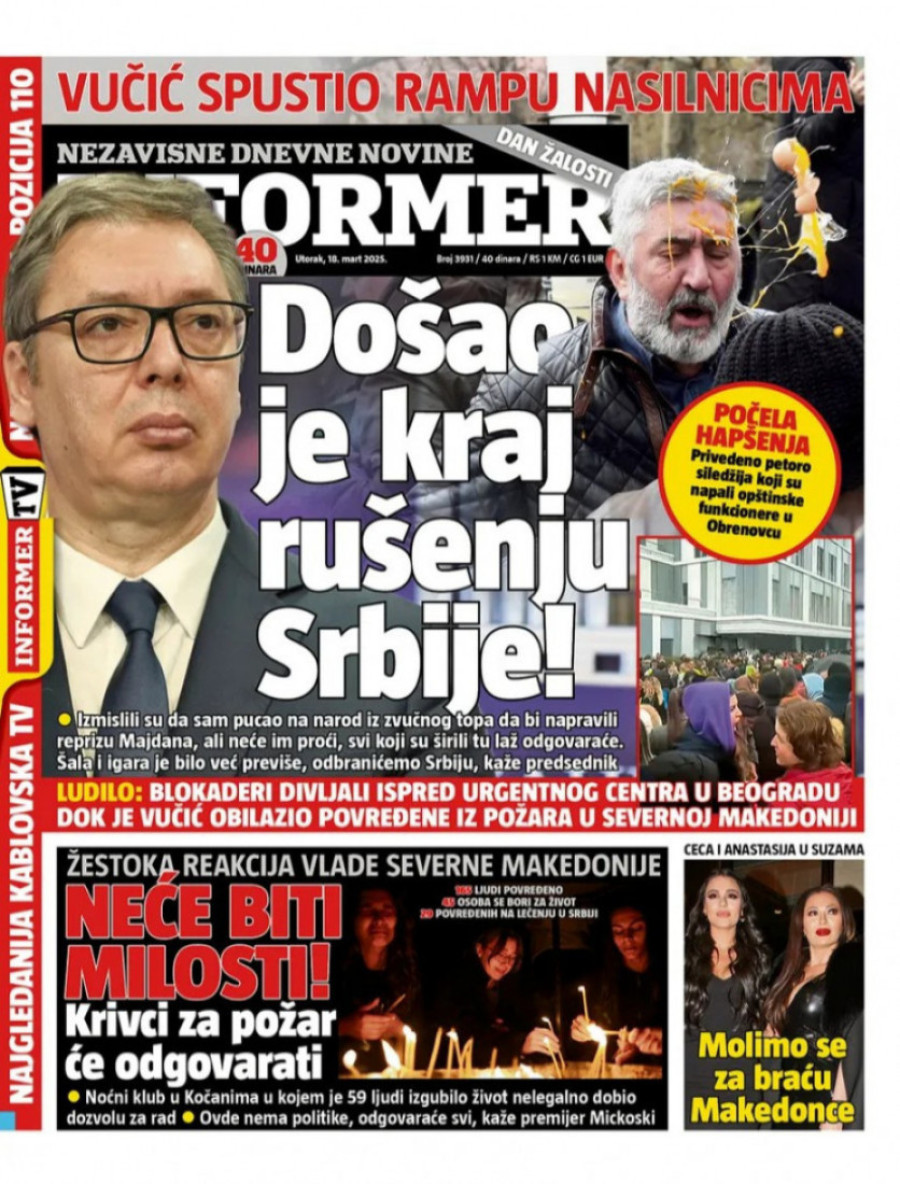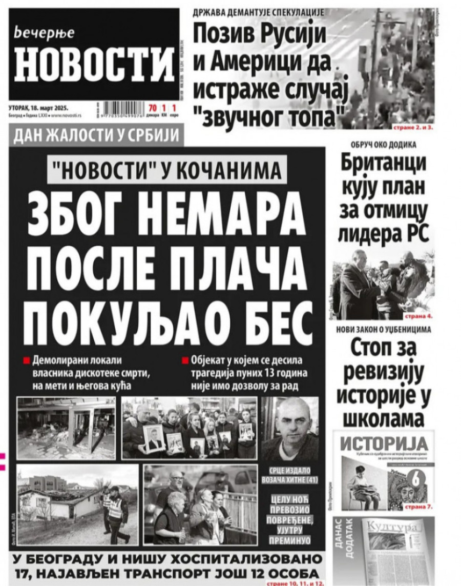 Dnevne novine u Srbiji za utorak 18. mart 2025. godine na naslovnim stranama najavljuju brojne aktuelne društveno-političke teme.