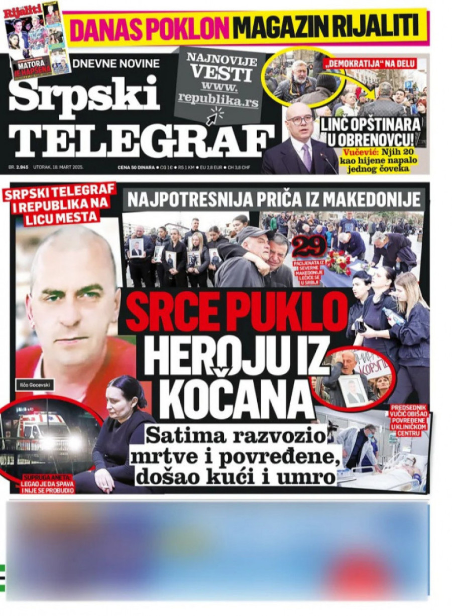 Naslovne strane dnevnih novina: Prelistavanje štampe za 18. mart 2025. godine
