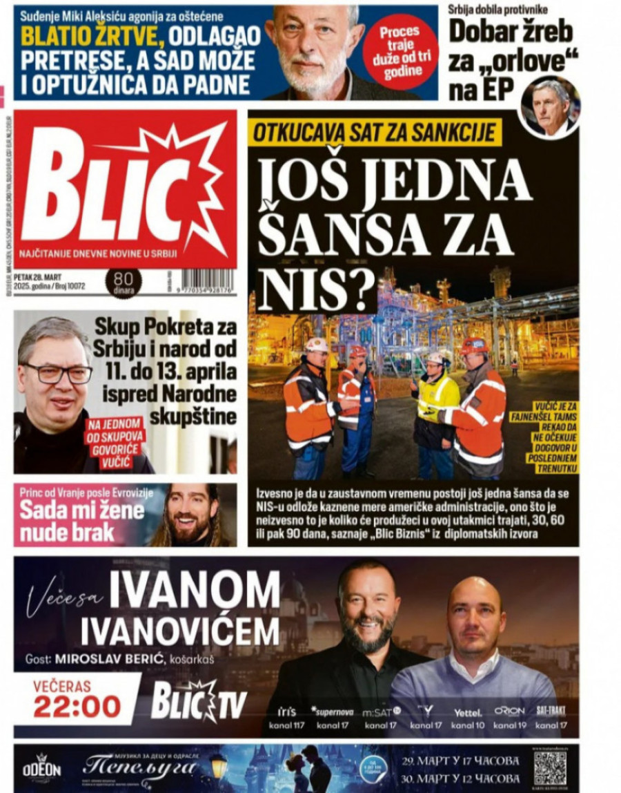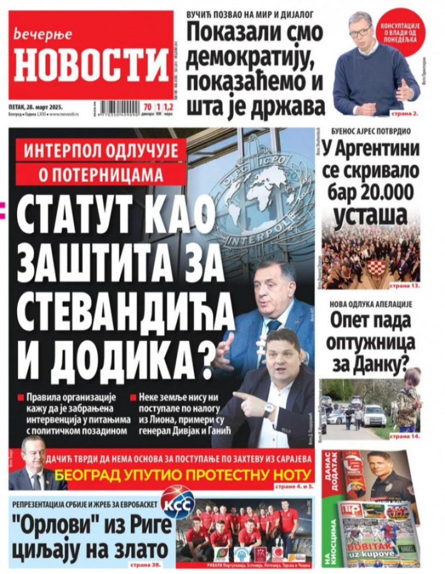 Naslovne strane dnevnih novina: Prelistavanje štampe za 28. mart 2025. godine