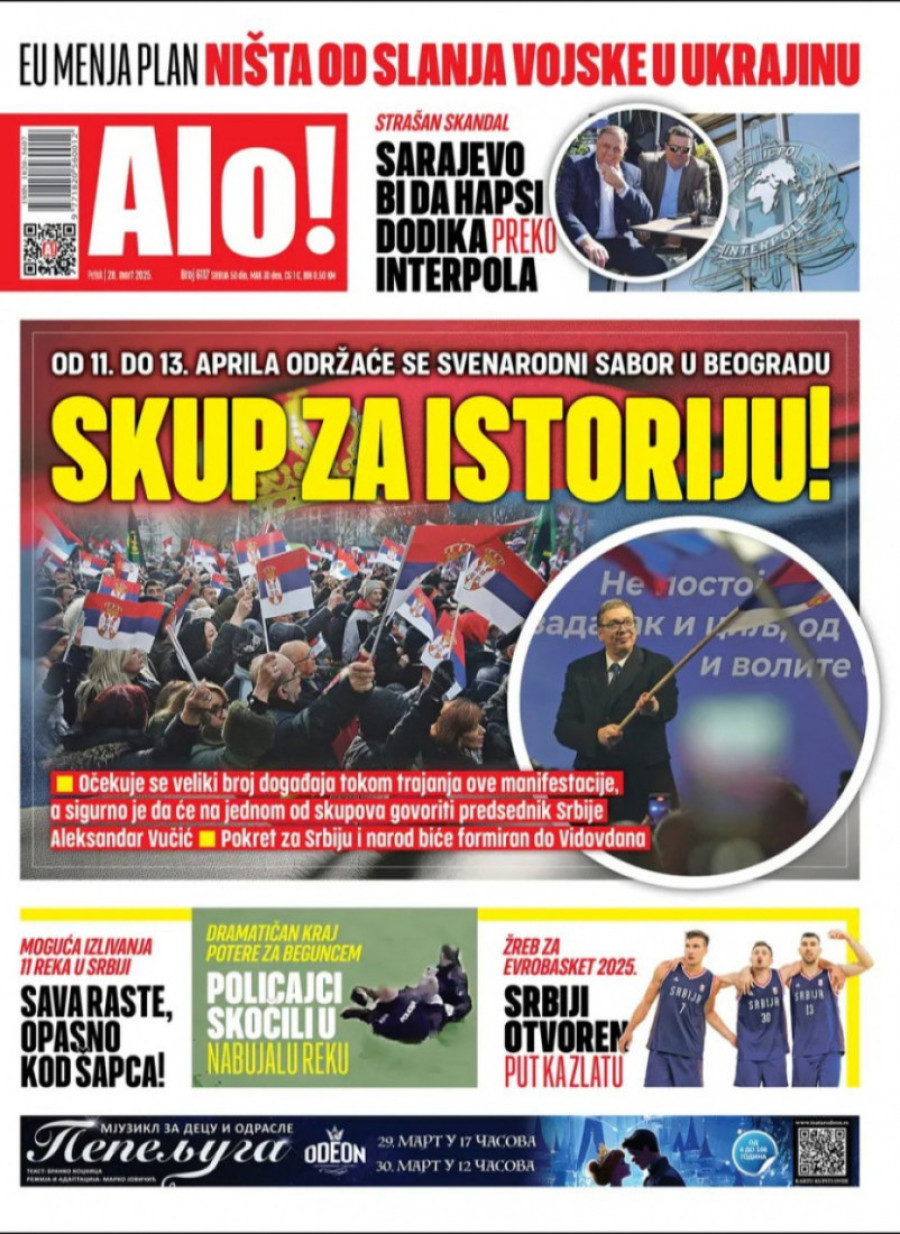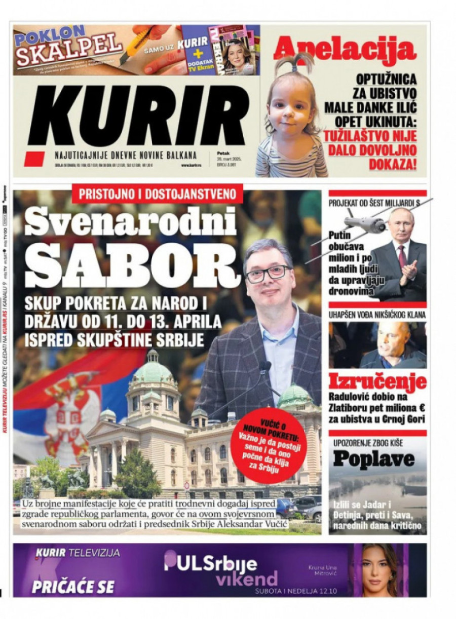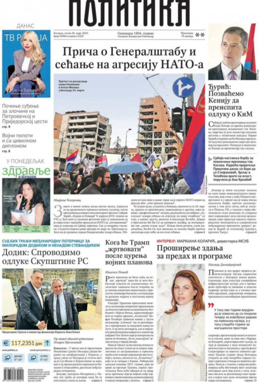Dnevne novine u Srbiji za petak 28. mart 2025. godine na naslovnim stranama najavljuju brojne aktuelne društveno-političke teme.