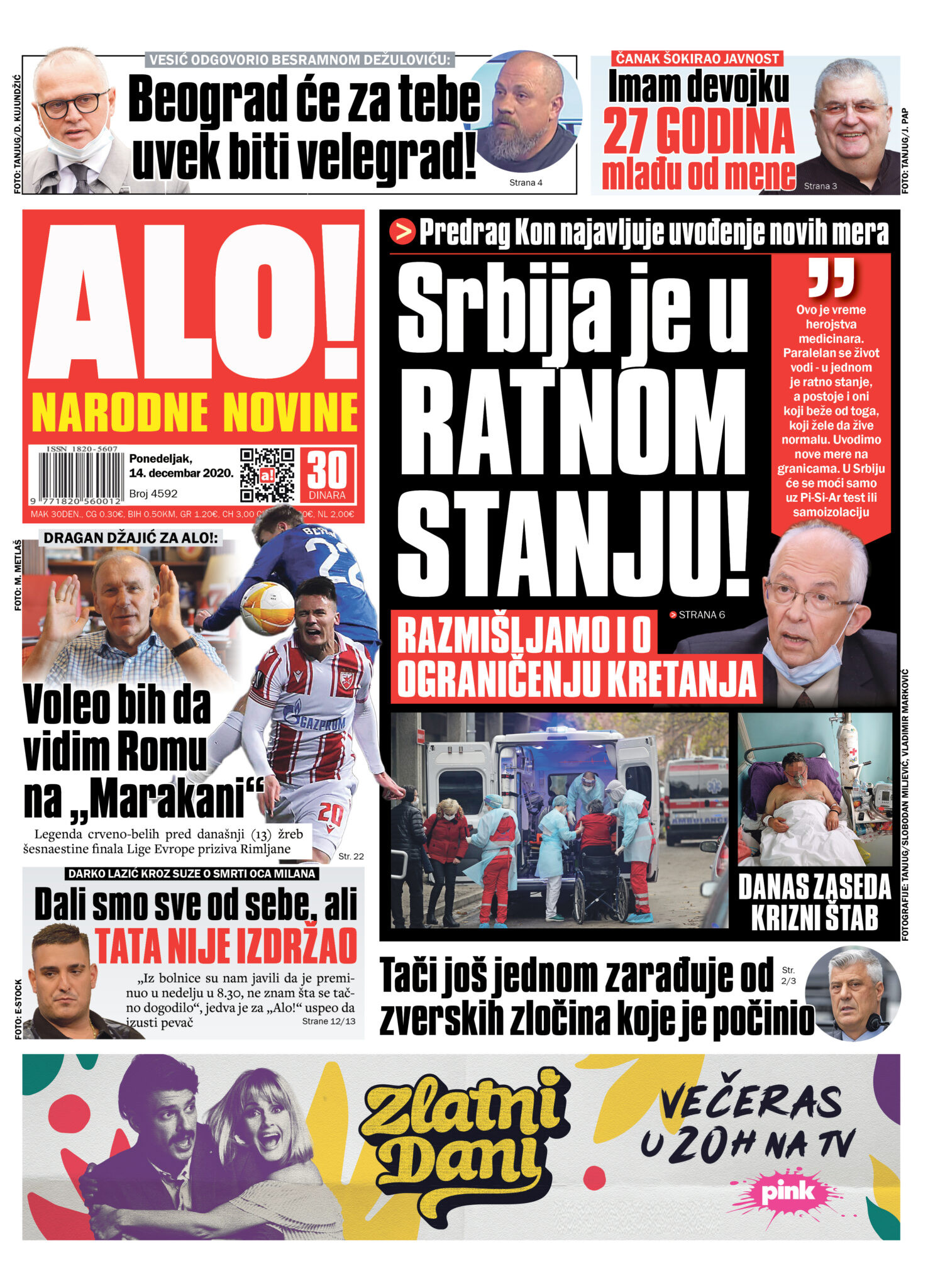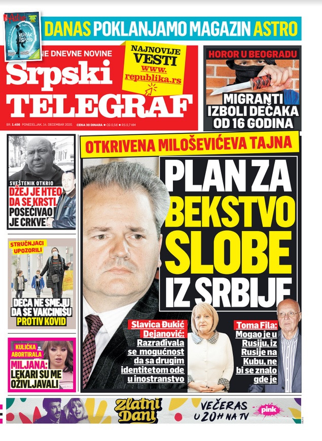 Dnevne novine u Srbiji za nedelju, 13. decembar 2020. godine, na naslovnim stranama pišu o brojnim aktuelnim društveno-političkim temama i donose brojne ekskluzivne priče.