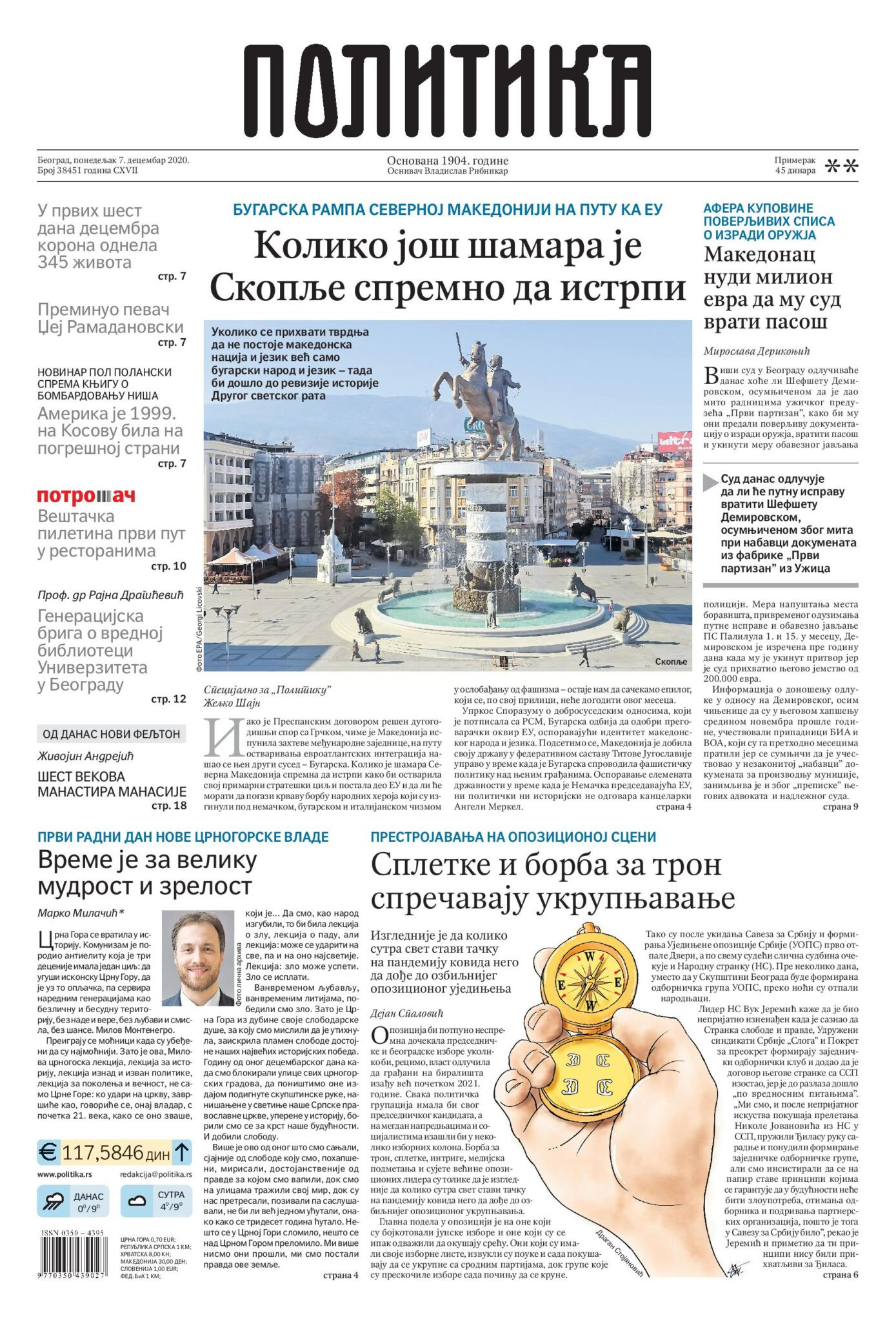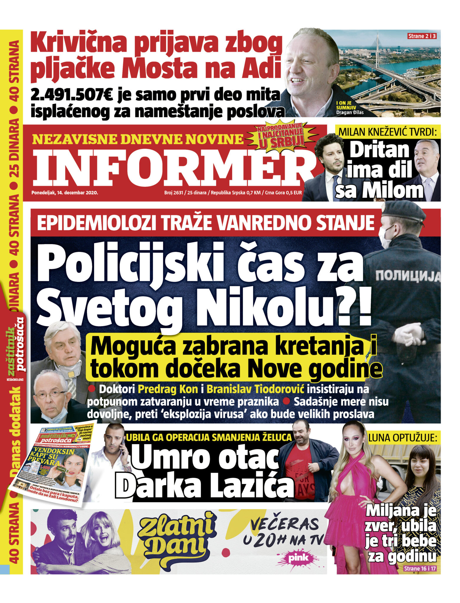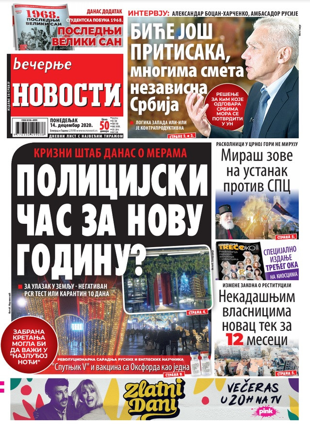 Prelistavanje štampe za ponedeljak, 14. decembar 2020. godine