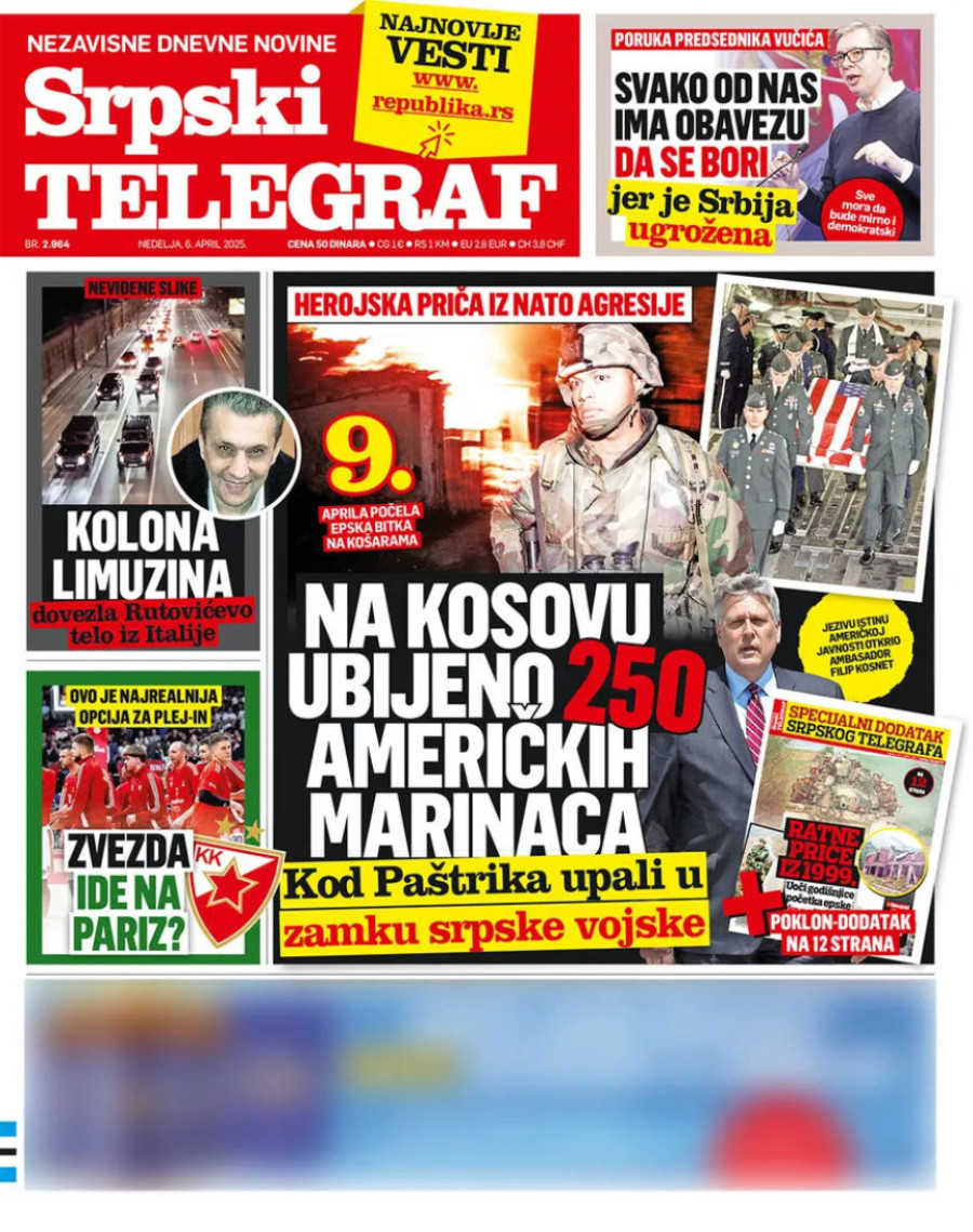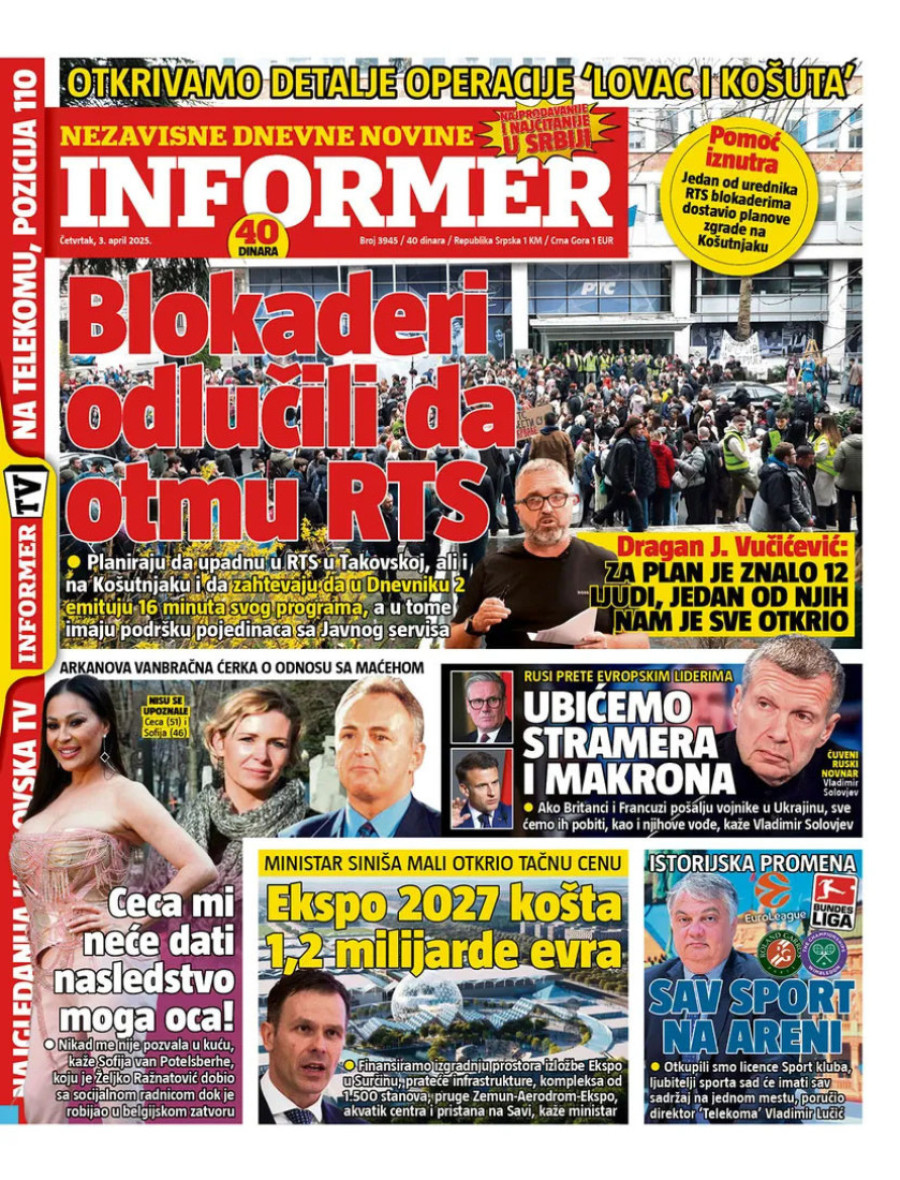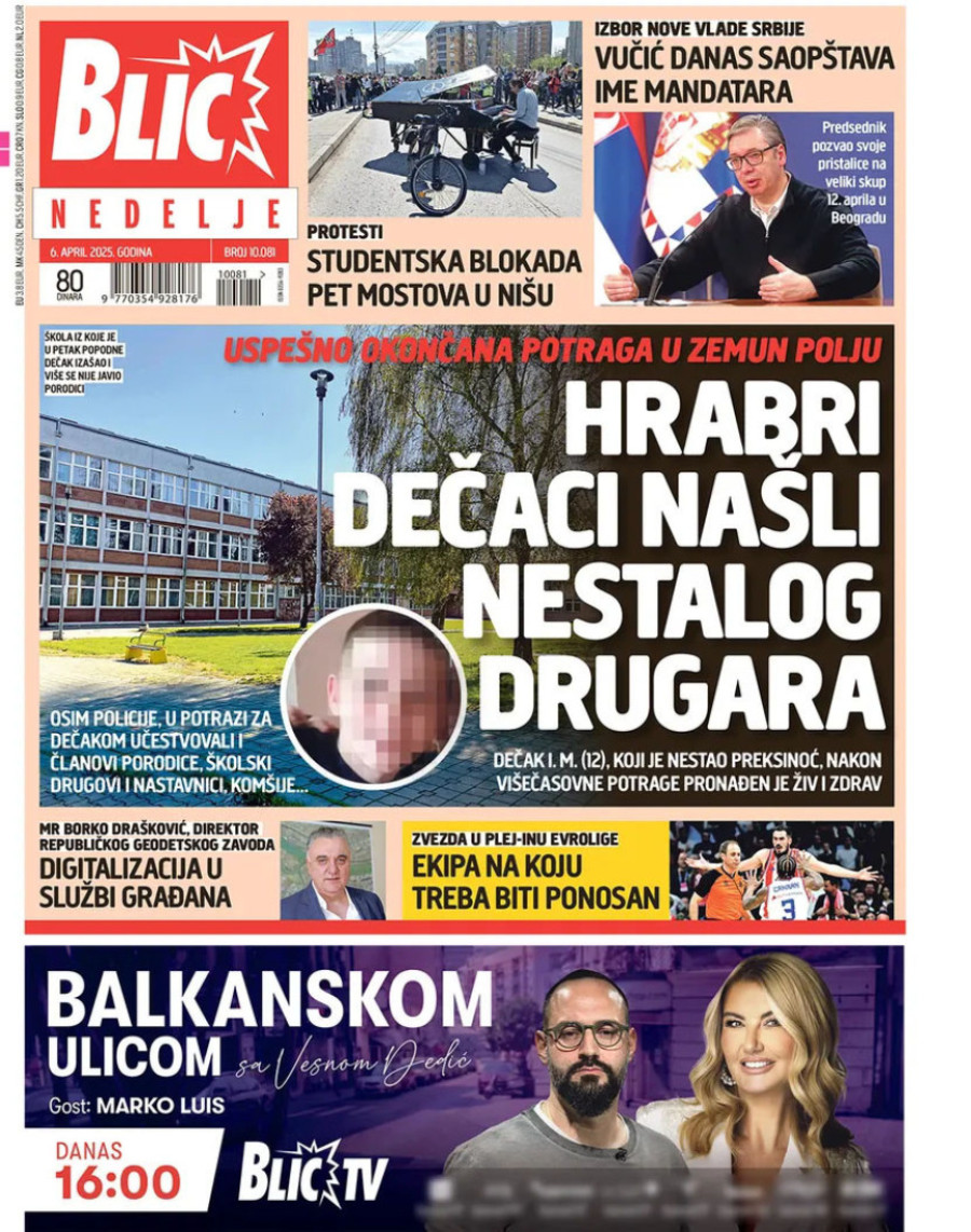 Dnevne novine u Srbiji za nedelju 6. april 2025. godine na naslovnim stranama najavljuju brojne aktuelne društveno-političke teme.