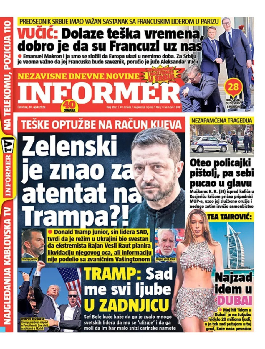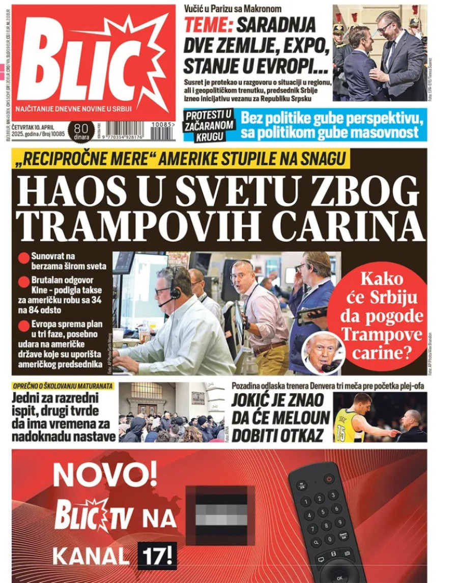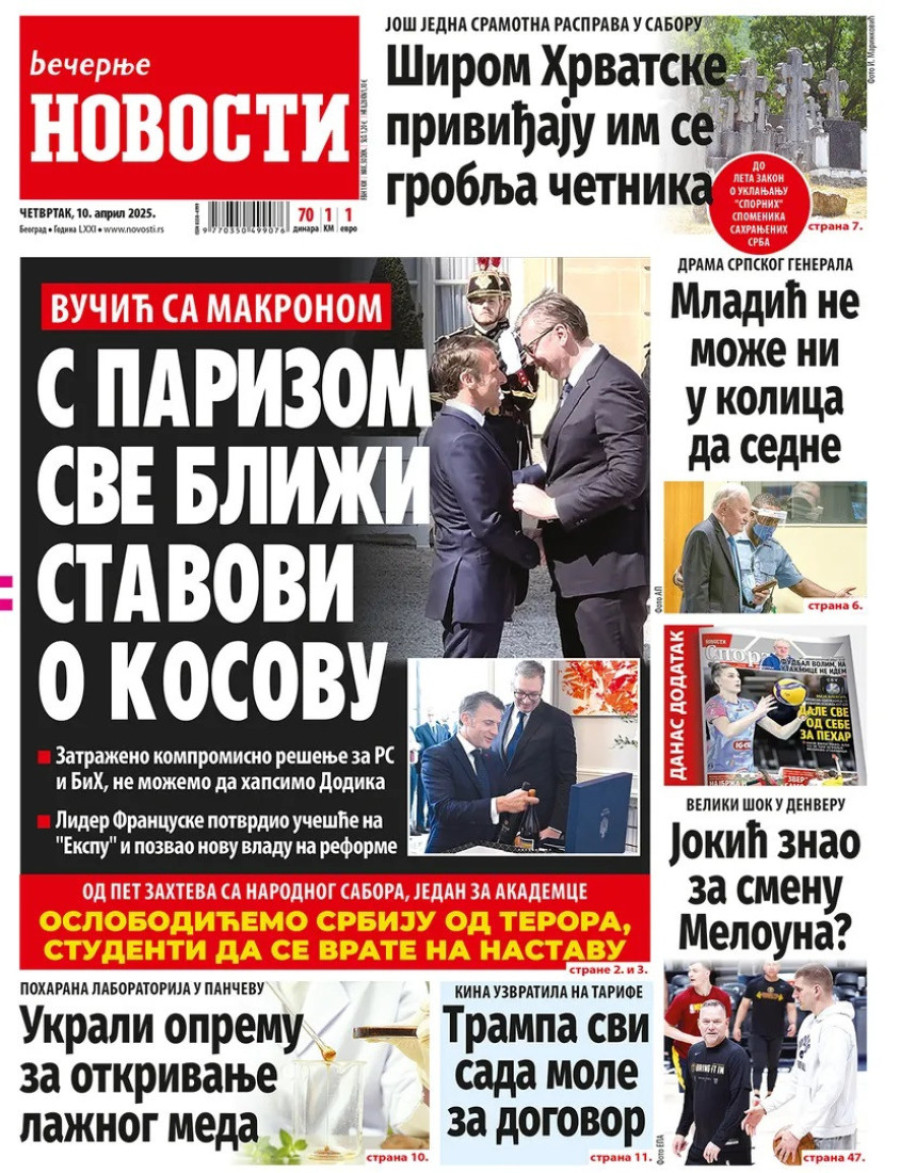 Naslovne strane dnevnih novina: Prelistavanje štampe za 10. april 2025. godine