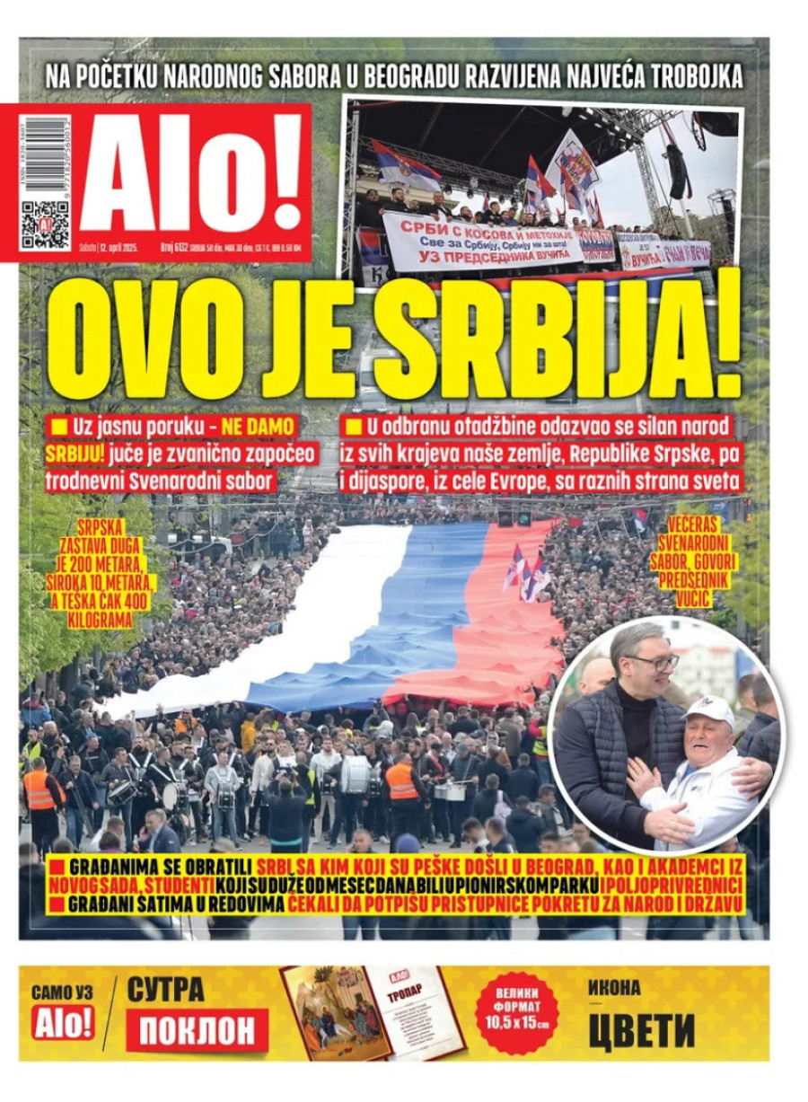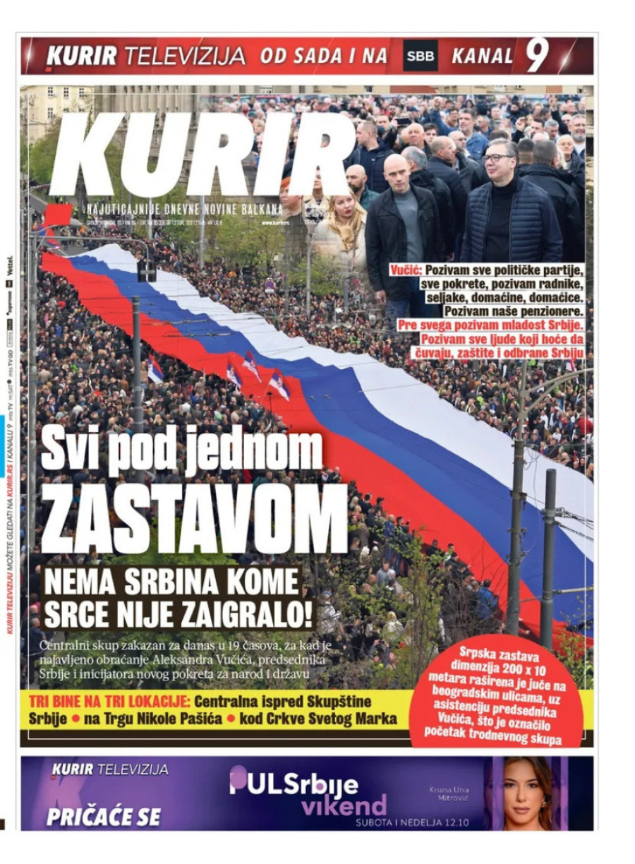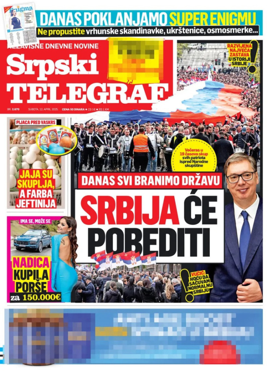 Dnevne novine u Srbiji za subotu 12. april 2025. godine na naslovnim stranama najavljuju brojne aktuelne društveno-političke teme.