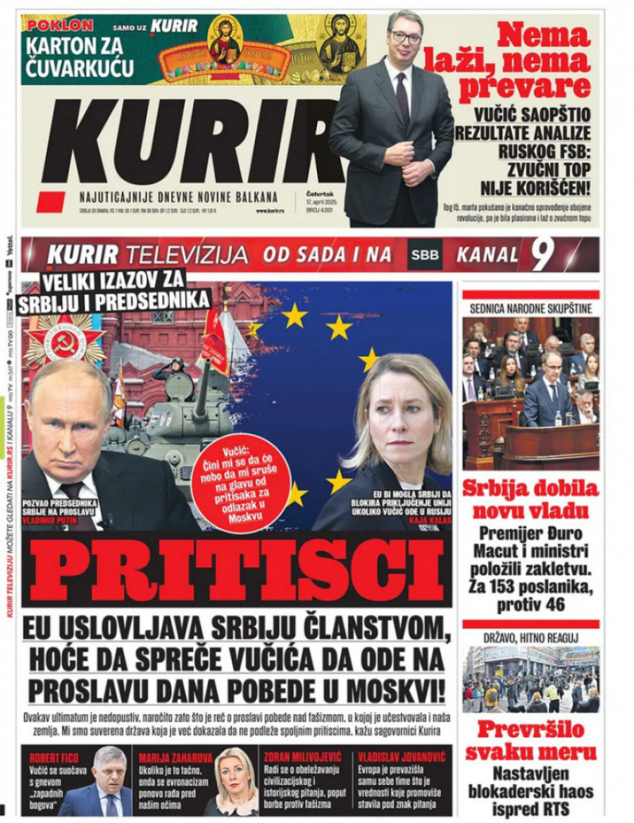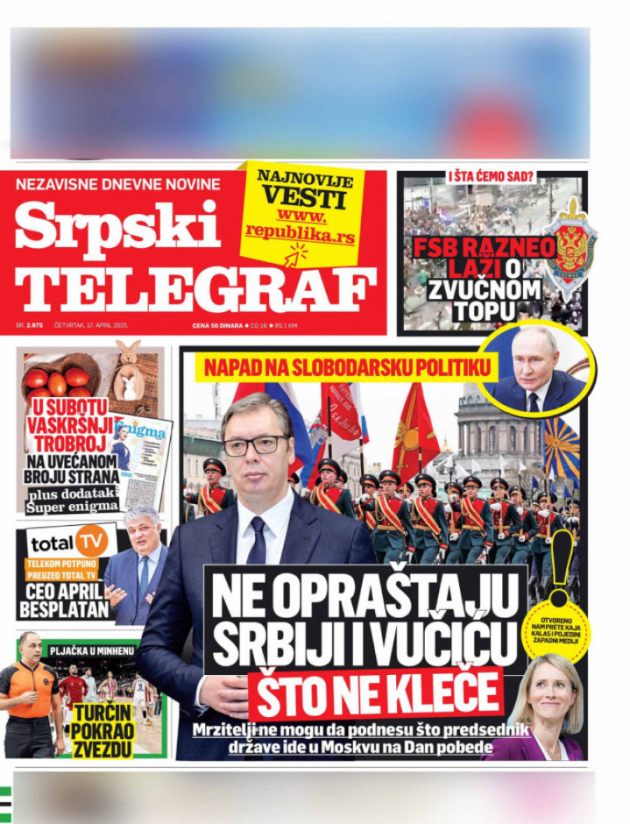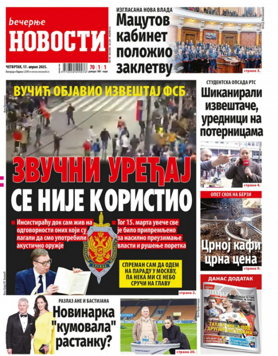 Dnevne novine u Srbiji za četvrtak, 17. april 2025. godine, na naslovnim stranama najavljuju brojne aktuelne društveno-političke teme.