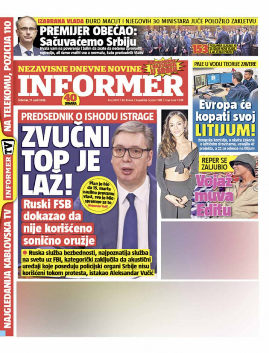 Naslovne strane dnevnih novina: Prelistavanje štampe za 17. april 2025. godine