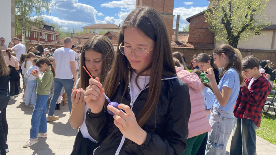 U porti crkve Svetog Nikole u Novom Pazaru danas je održano tradicionalno takmičenje za najlepše išarano vaskršnje jaje, koje je i ove godine okupilo veliki broj osnovaca.
