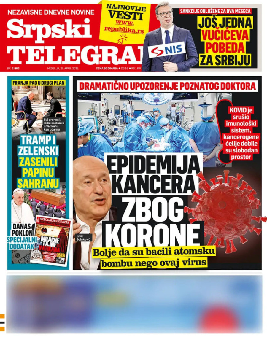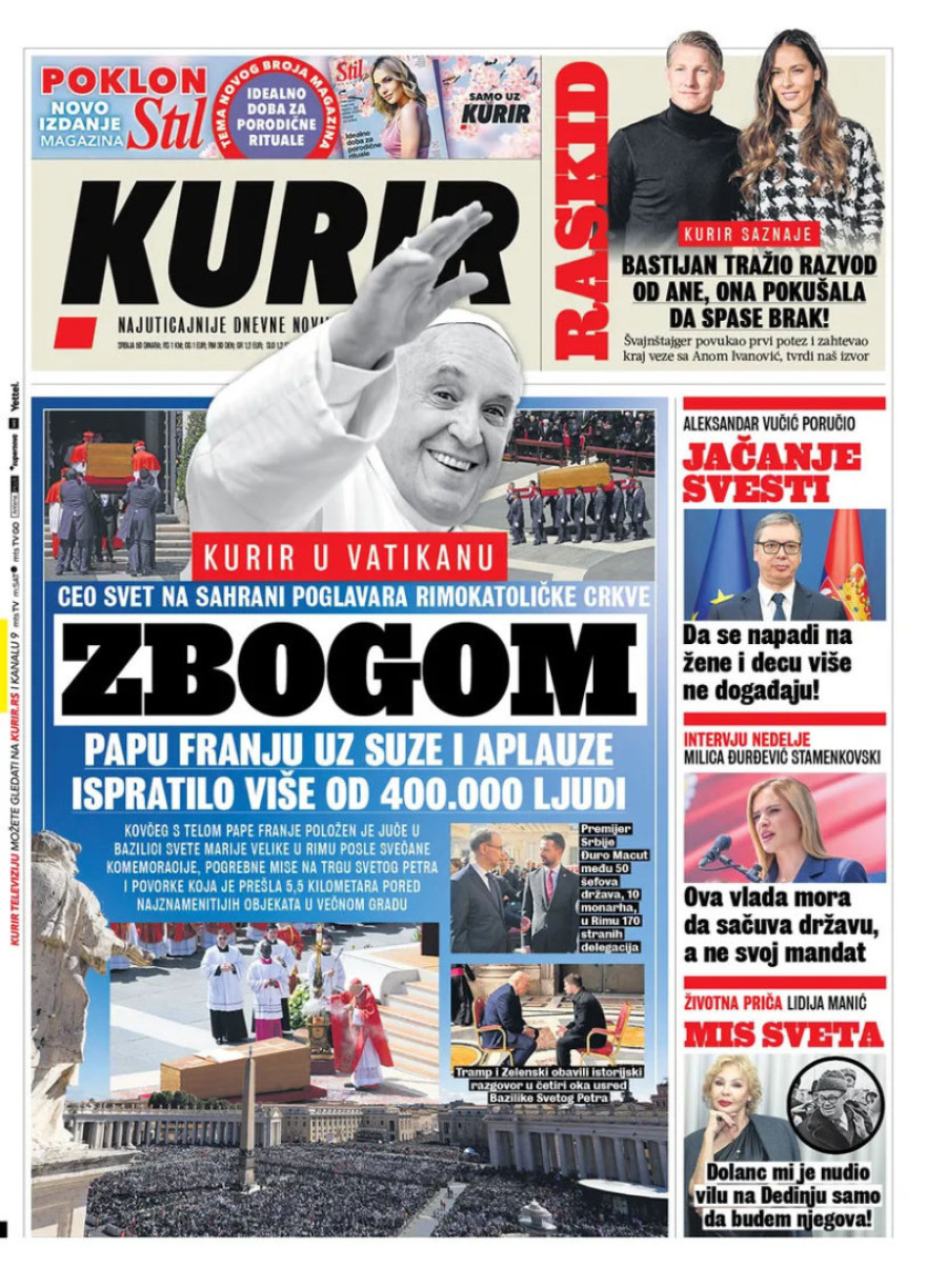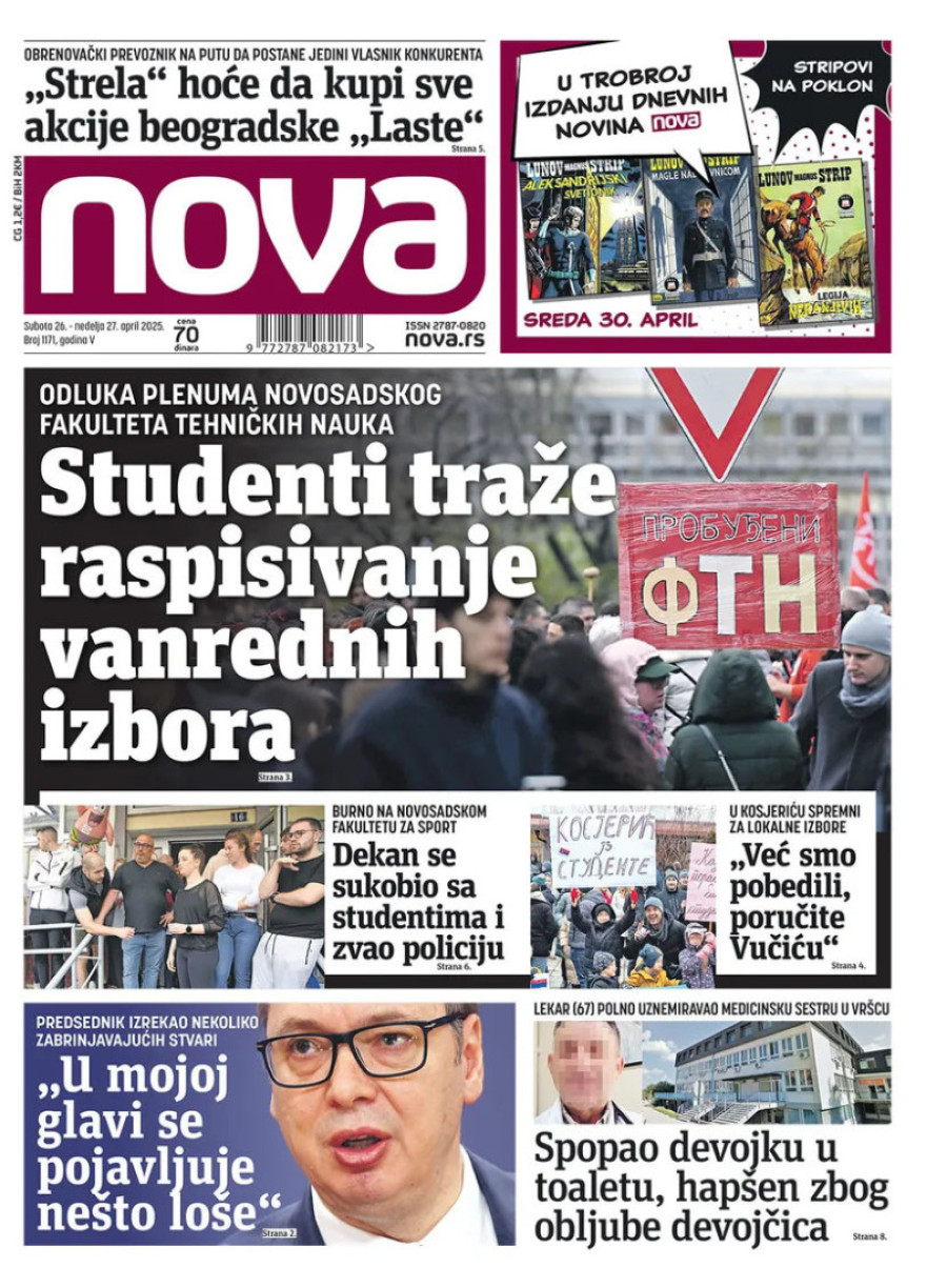 Dnevne novine u Srbiji za nedelju, 27. april 2025. godine, na naslovnim stranama najavljuju brojne aktuelne društveno-političke teme.