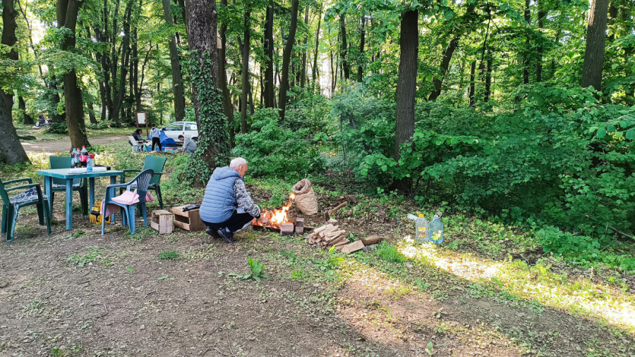 Novosađani i Vojvođani su, po starom dobrom običaju, okupirali Frušku goru i kod njih je uranak već uveliko počeo. Svi su dobrano spremni na ovom čuvenom izletištu. Tu je već spremljena salata, sveže lepinje. Meso se već peče. A na prvomajskim stolovima ima i kolača.