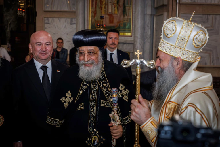 Patrijarh Srpske pravoslavne crkve Porfirije dočekao je danas u Hramu Svetog Save patrijarha Koptske crkve Tavadrosa II nakon čega je služio liturgiju posvećenu Svetim ženama mironosicama.