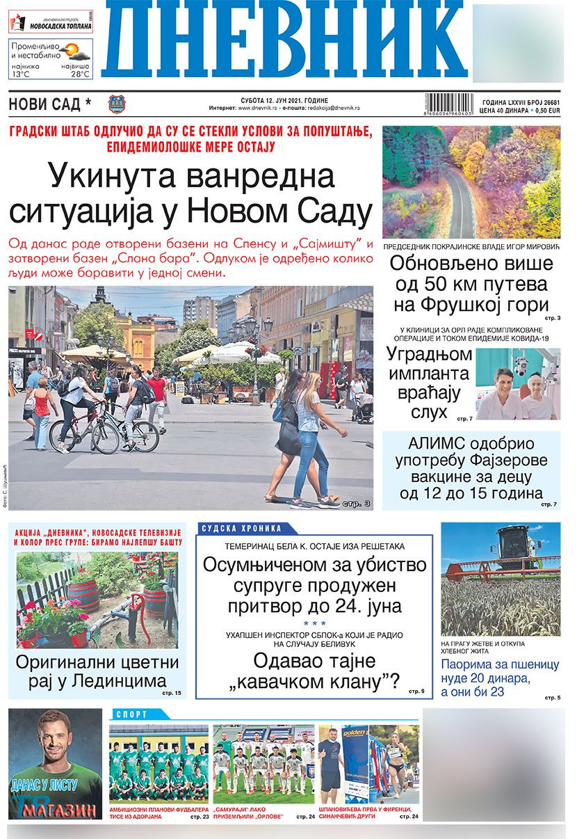 Dnevne novine u Srbiji za subotu, 12. jun 2021. godine, na naslovnim stranama najavljuju brojne aktuelne društveno-političke teme i donose ekskluzivne priče.