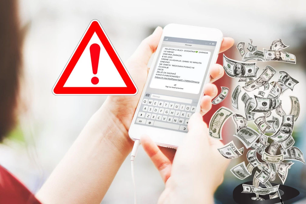 - Telefon u ruci - dodatna zarada uz mene! Dnevna zarada od 50 do 200 dolara. Vreme ulaganja: samo 10 minuta dnevno. Ne ometa redovan posao ni čuvanje dece. Želiš da saznaš kako funkcioniše - glasi poruka koja stiže građanima, a u nastavku je link koji će mnogi kliknuti i rizikovati da otkrije neke od svojih podataka ili da im bude skinut novac sa računa.