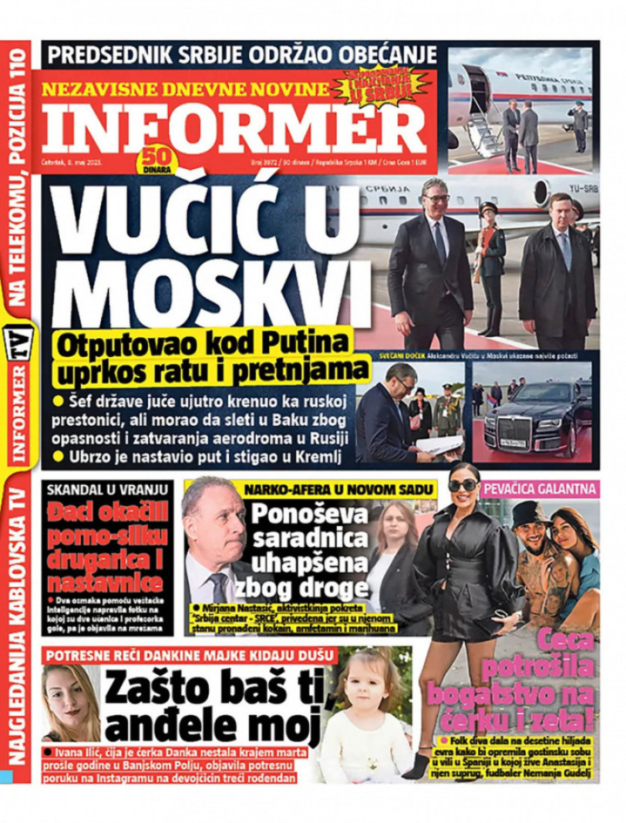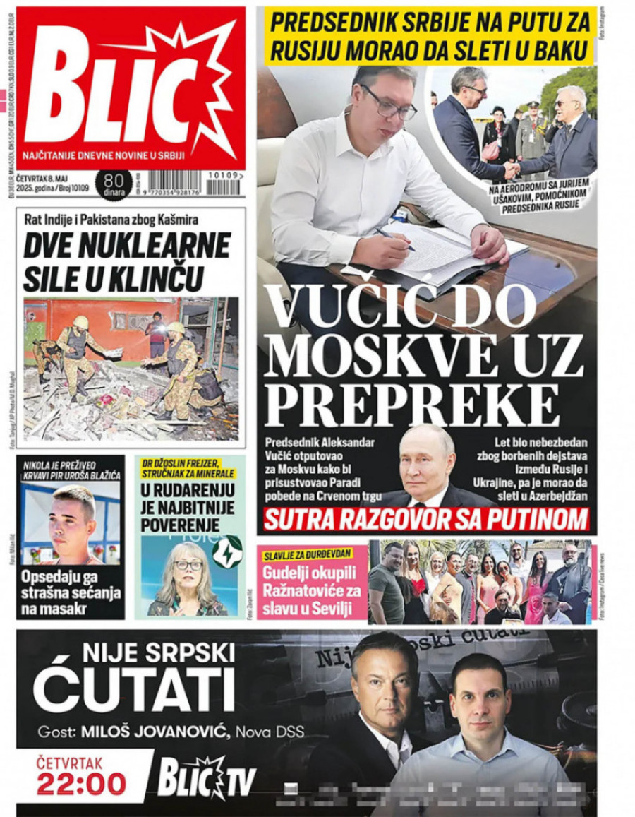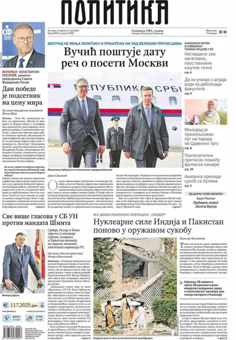 Naslovne strane dnevnih novina: Prelistavanje štampe za 8. maj 2025. godine