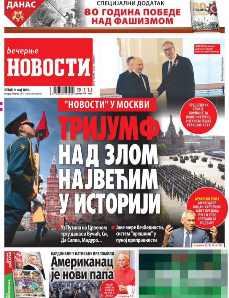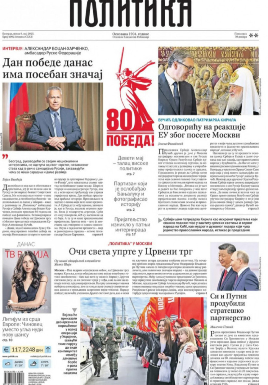 Naslovne strane dnevnih novina: Prelistavanje štampe za 9. maj 2025. godine