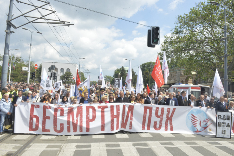 Ceremoniji obeležavanja Dana pobede prisustvovao je veliki broj građana, koji se nakon polaganja venaca okupio u Ruzveltovoj ulici, ispred Spomen kompleksa, odakle je krenuo u marš "Besmrtnog puka" ka Trgu Republike.