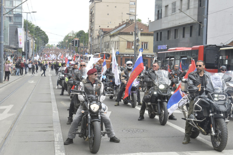 Na čelu kolone su ministar kulture Nikola Selaković, ministarka privrede Adrijana Mesarović, ministarka za brigu o porodici i demografiju Jelena Žarić Kovačević i ambasador Rusije Aleksandar Bocan-Harčenko.