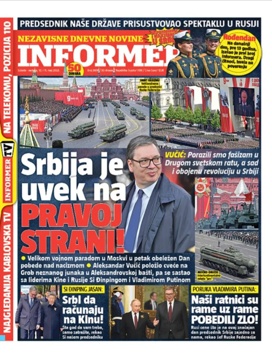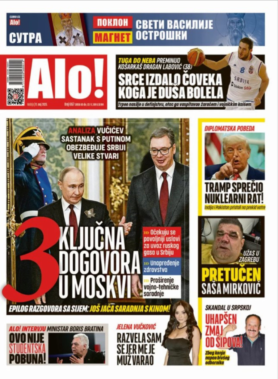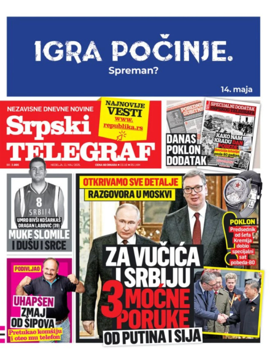 Dnevne novine u Srbiji za nedelju, 11. maj 2025. godine, na naslovnim stranama najavljuju brojne aktuelne društveno-političke teme.