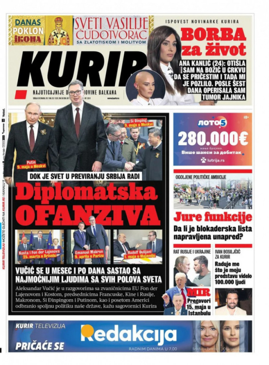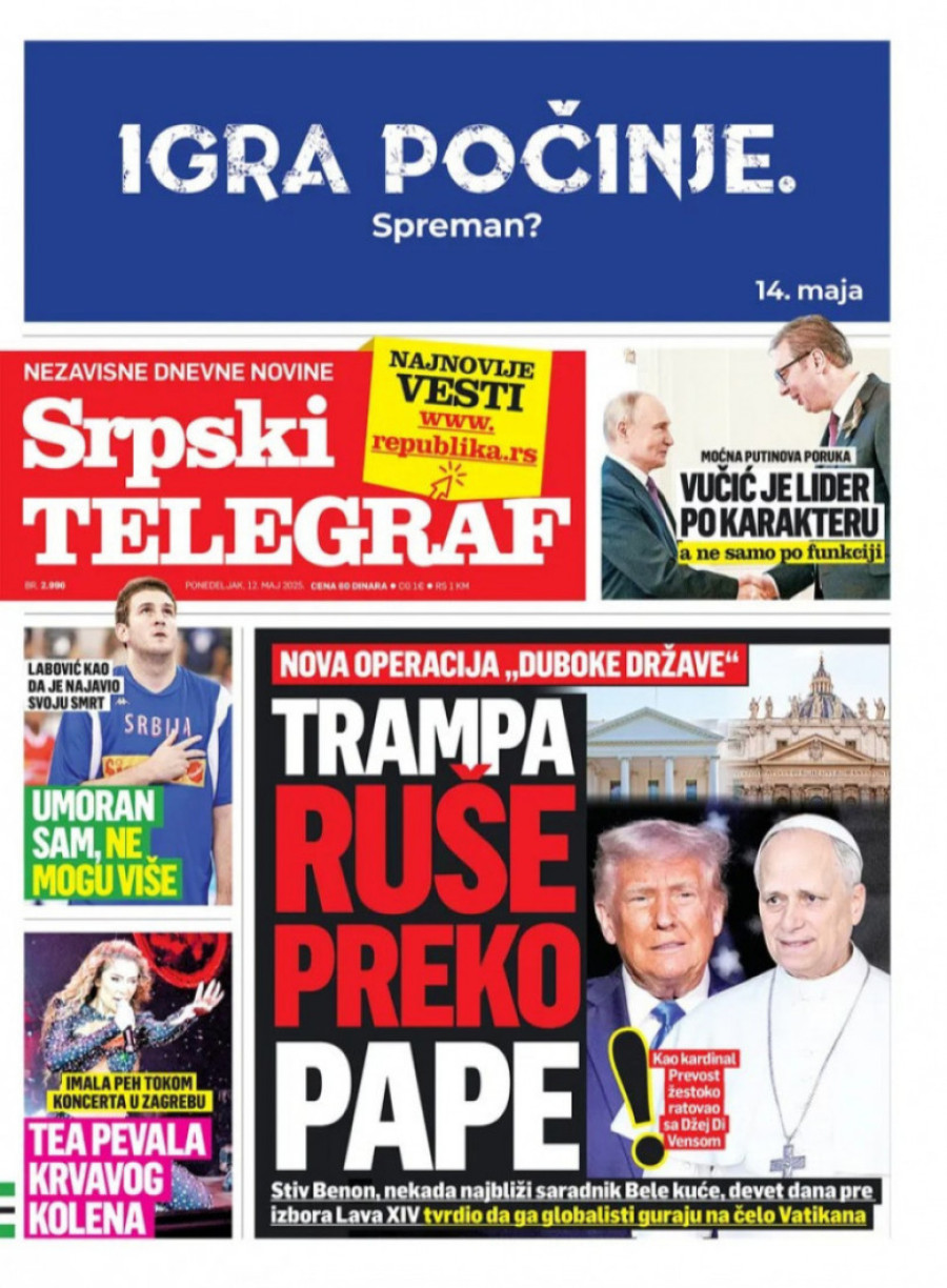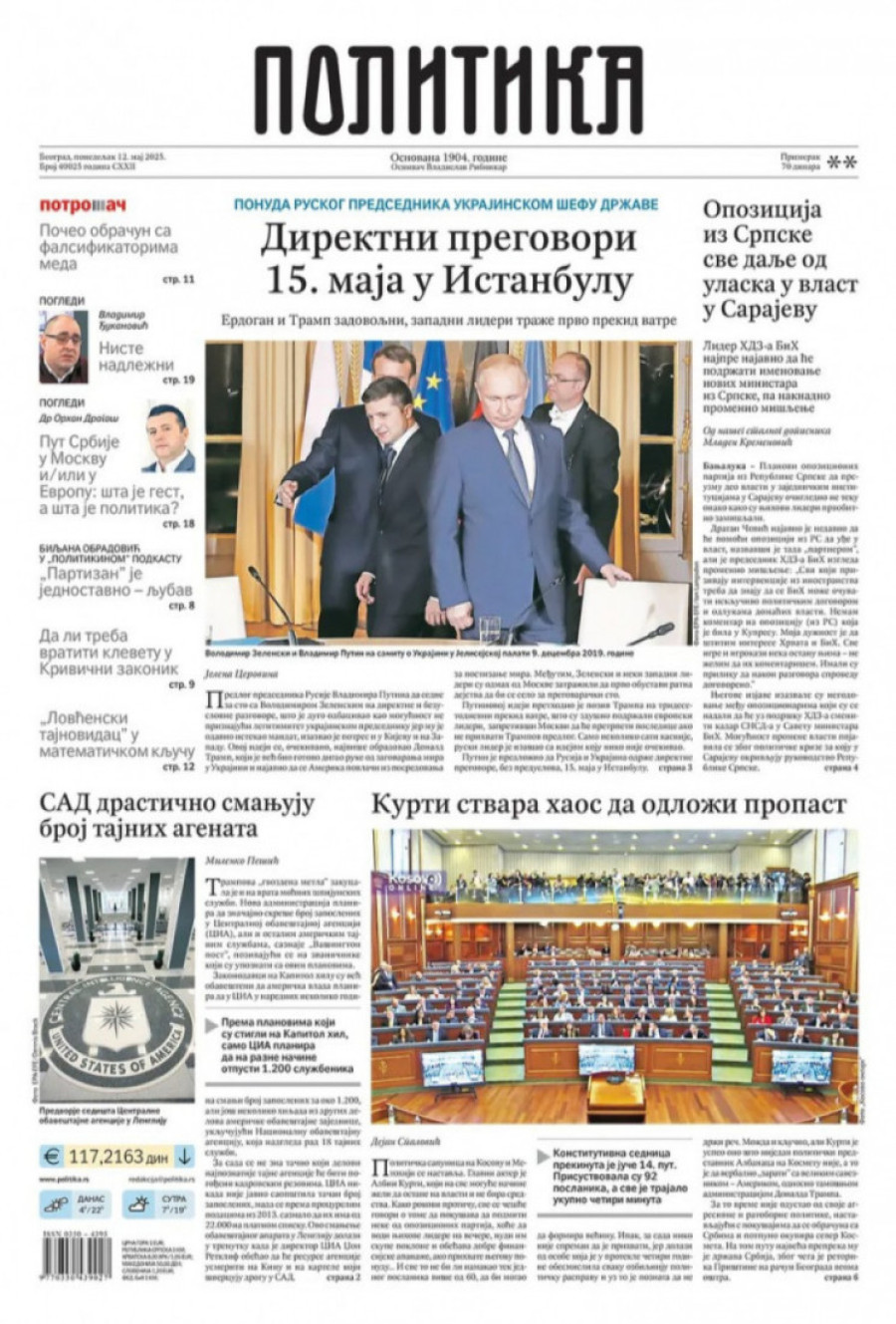 Naslovne strane dnevnih novina: Prelistavanje štampe za 12. maj 2025. godine