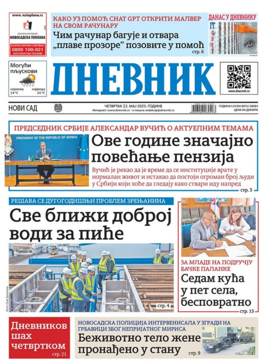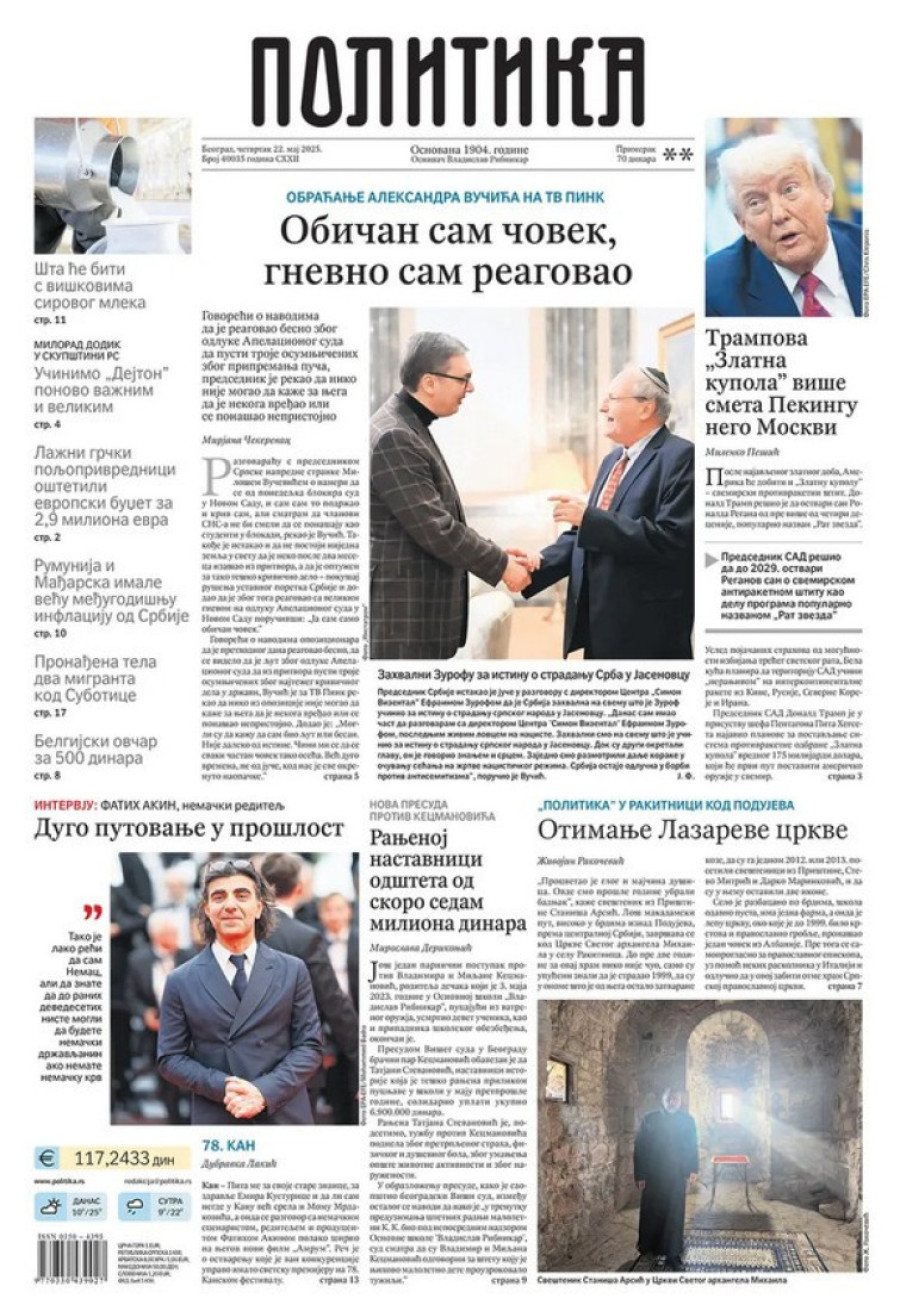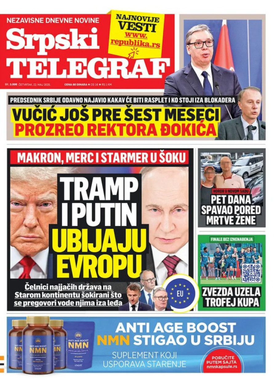 Naslovne strane dnevnih novina: Prelistavanje štampe za 22. maj 2025. godine