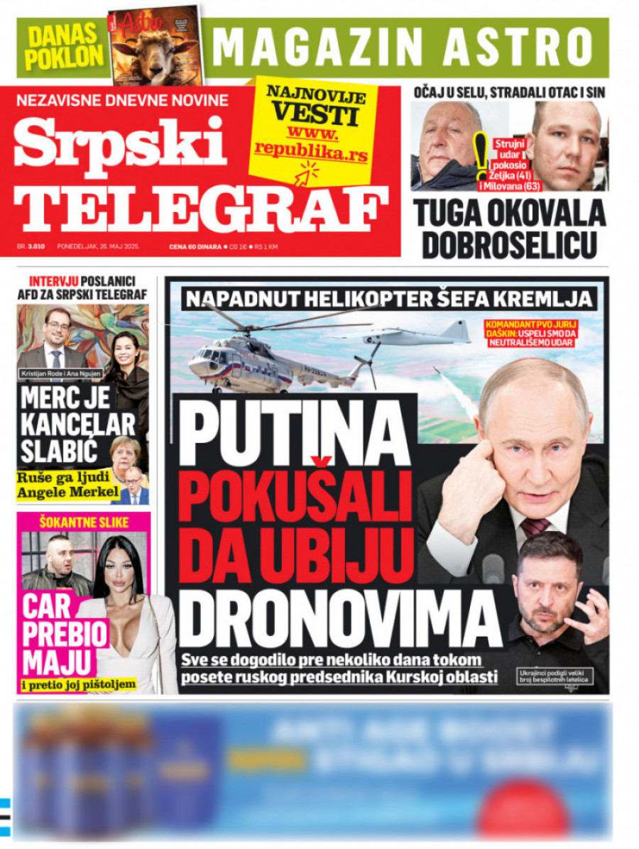 Naslovne strane dnevnih novina: Prelistavanje štampe za 26. maj 2025. godine