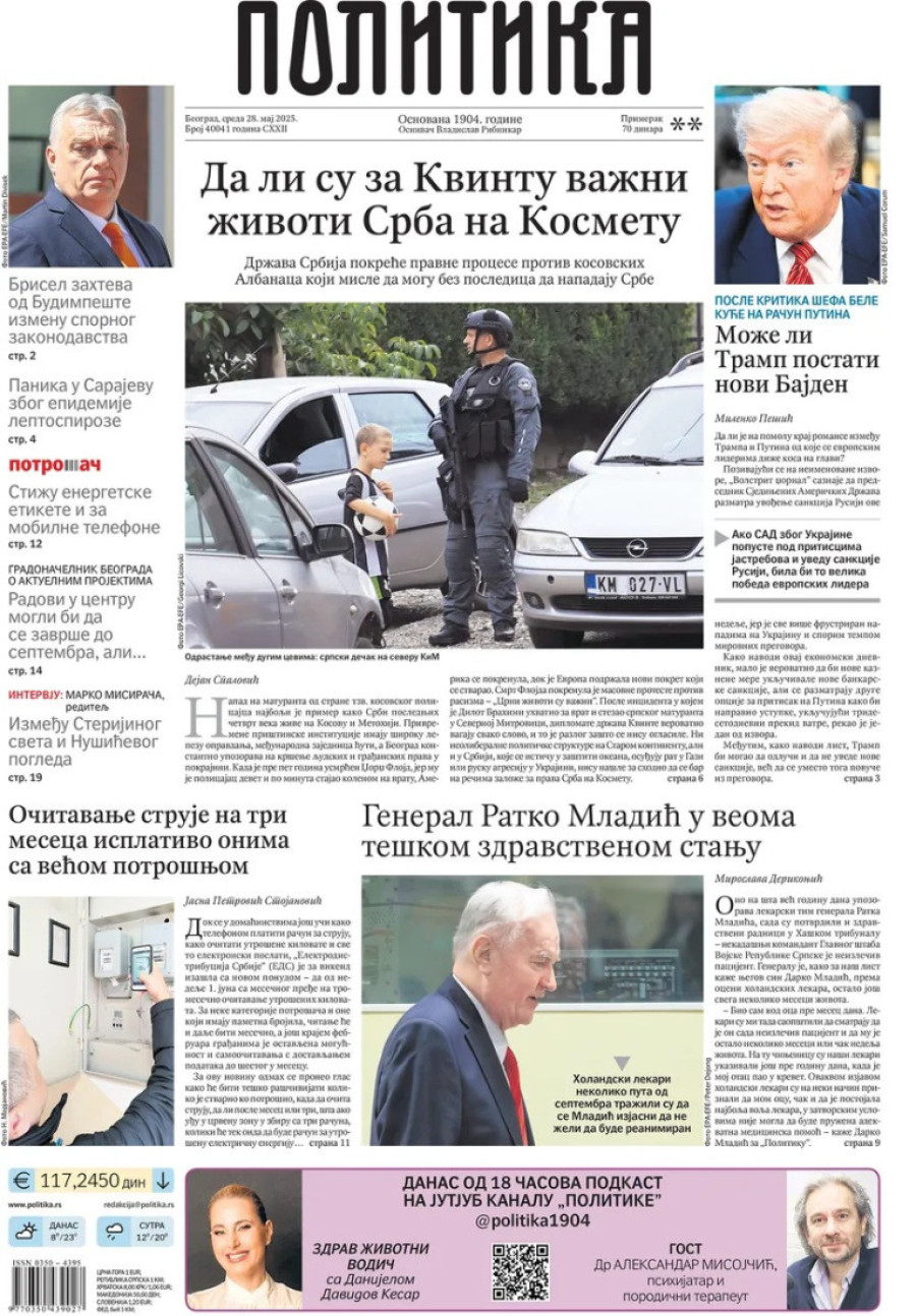 Naslovne strane dnevnih novina: Prelistavanje štampe za 28. maj 2025. godine