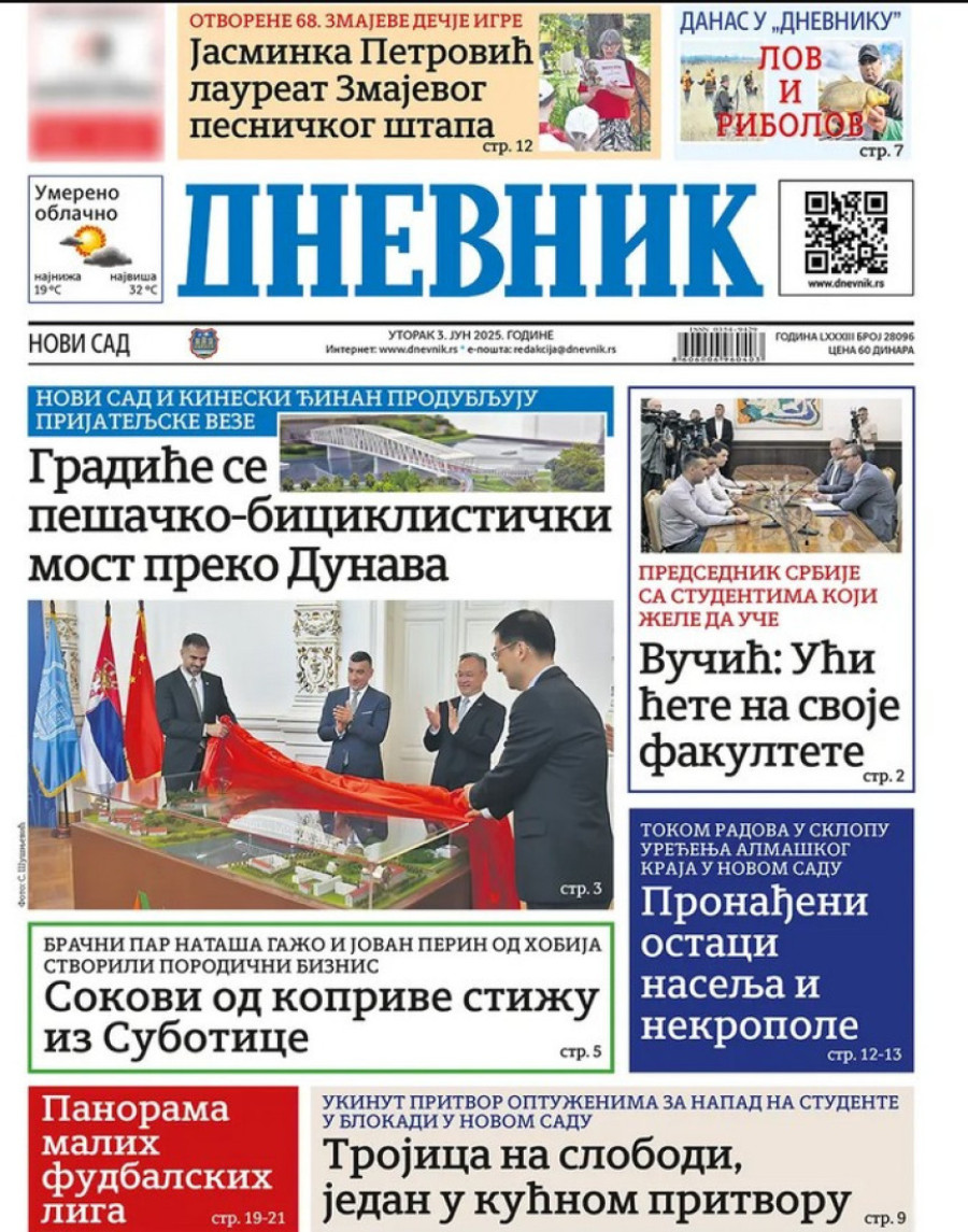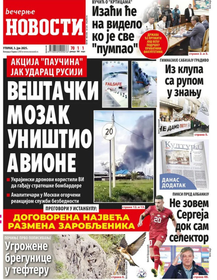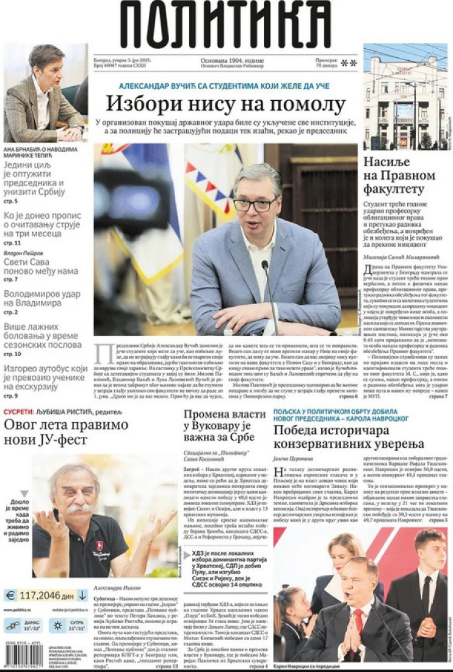 Dnevne novine u Srbiji za ponedeljak 3. jun 2025. godine, na naslovnim stranama najavljuju brojne aktuelne društveno-političke teme.