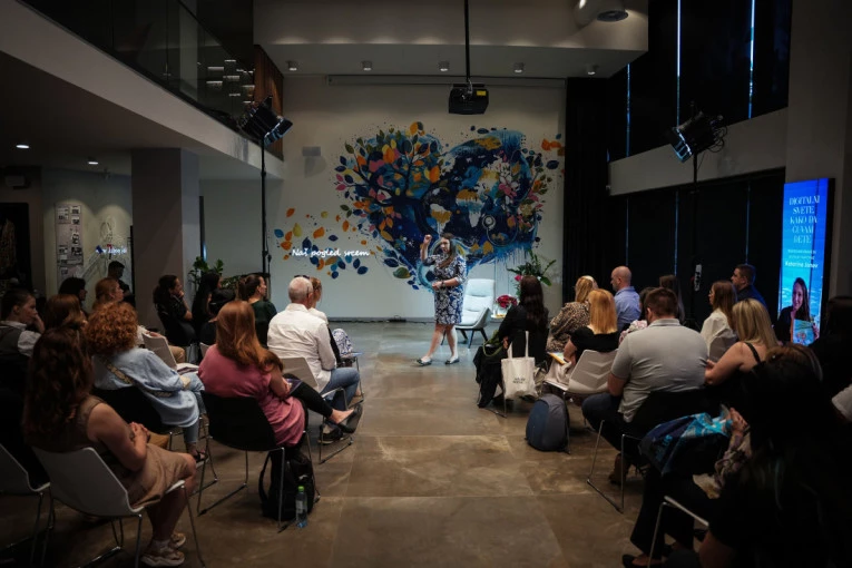 „Kada ste poslednji put imali porodični obrok bez telefona kao gosta za trpezom“, pitala je Katarina i izazvala muk u publici, a zatim dodala da nas deca možda ne slušaju baš uvek, ali uvek gledaju šta radimo. Telefon nije dadilja, ni vaspitač, ni učitelj, ni zamena za roditelja, već pomoćno sredstvo koje može biti korisno, ali samo ako se koristi umereno i na pravi način. A u tome je ključna uloga roditelja – da deci daju usmerenje u digitalnim prostranstvima, kao što ih uče kako da pređu ulicu.