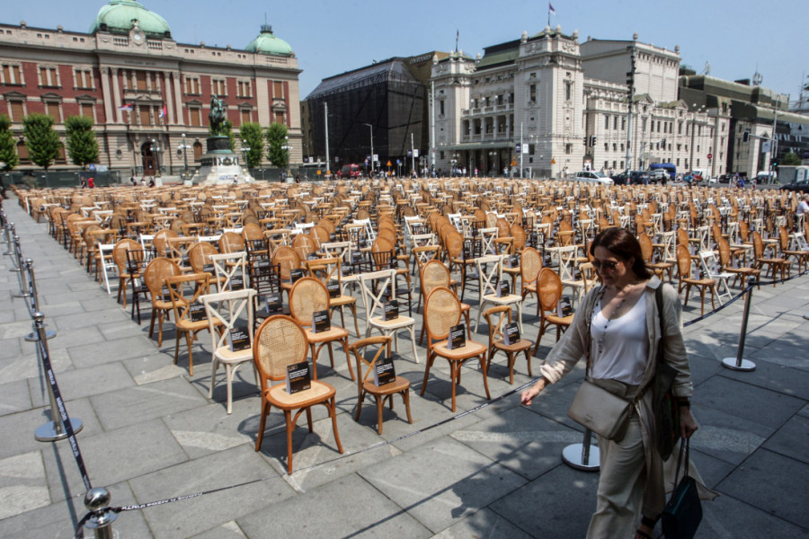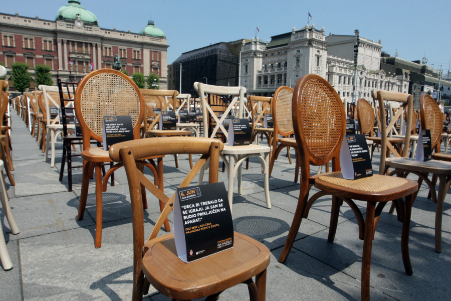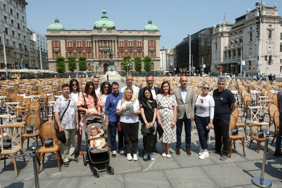 - Svaka od ovih 1.800 stolica ima osobu koja bi sedela tu i to je osoba koju čeka neki organ da bi nastavila da živi. Kao što vidite, ove male stolice su za decu, koja čekaju da transplantacija bude spas za njih - rekao je Lončar.