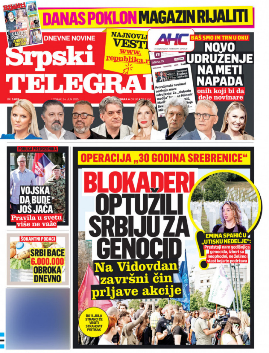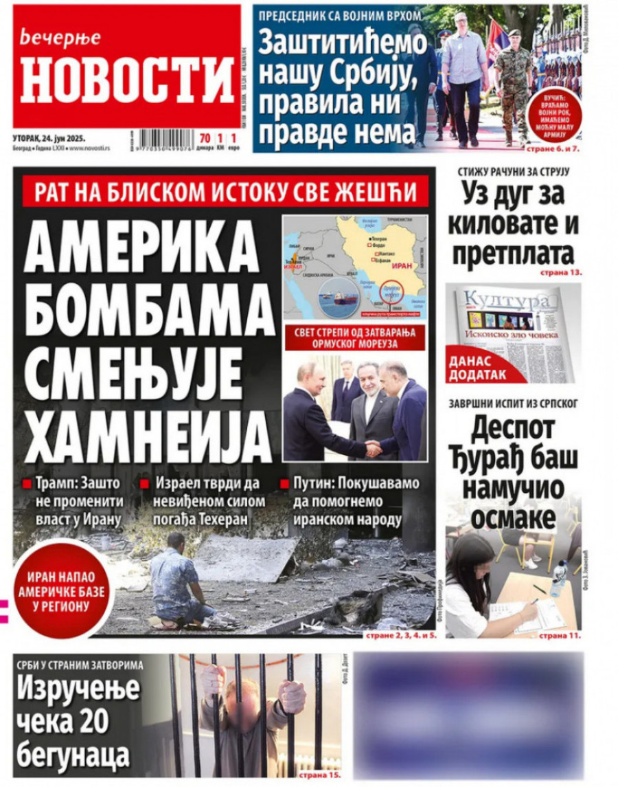 Naslovne strane dnevnih novina: Prelistavanje štampe za 24. jun 2025. godine