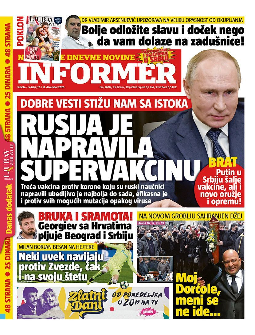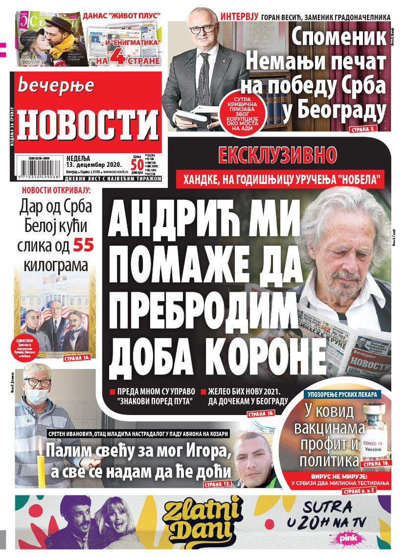 Dnevne novine u Srbiji za nedelju, 13. decembar 2020. godine, na naslovnim stranama pišu o brojnim aktuelnim društveno-političkim temama i donose brojne ekskluzivne priče.