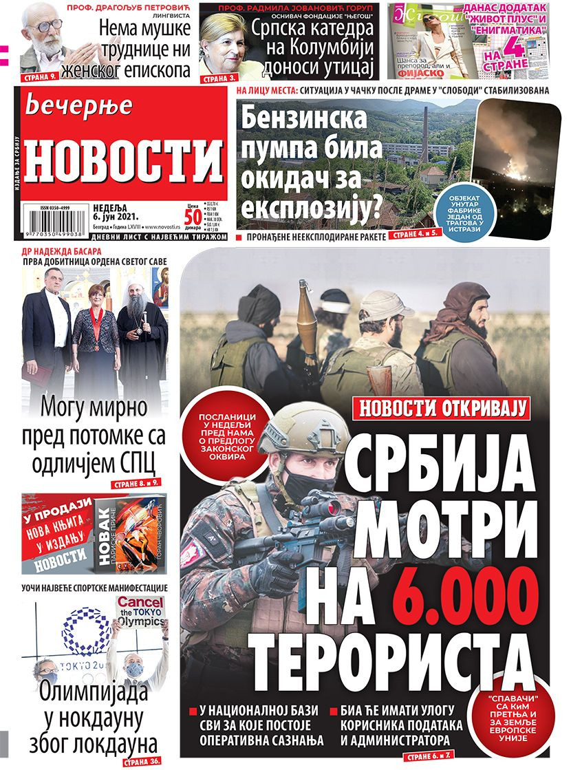 Dnevne novine u Srbiji za nedelju, 6. jun 2021. godine, na naslovnim stranama najavljuju brojne aktuelne društveno-političke teme i donose ekskluzivne priče.