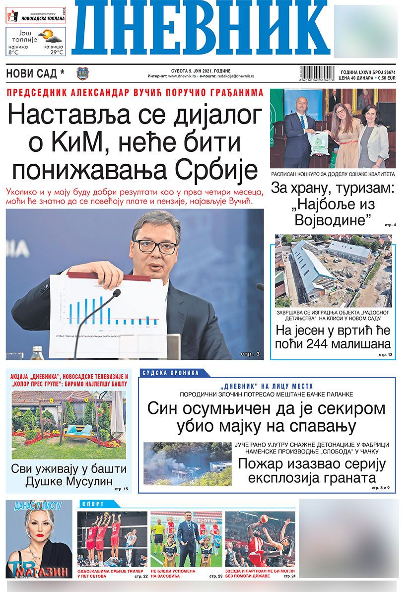 Dnevne novine u Srbiji za subotu, 5. jun 2021. godine, na naslovnim stranama najavljuju brojne aktuelne društveno-političke teme i donose ekskluzivne priče.