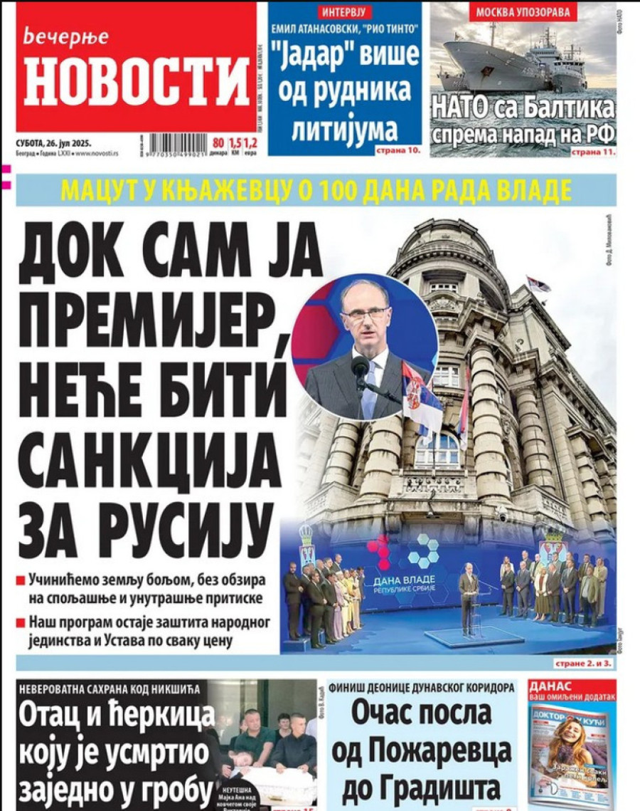 Naslovne strane dnevnih novina: Prelistavanje štampe za 26. jul 2025. godine
