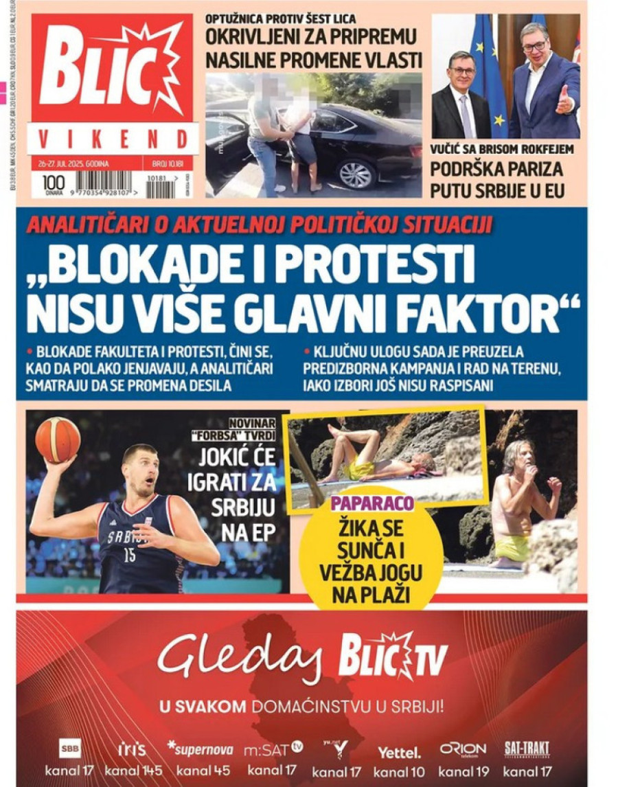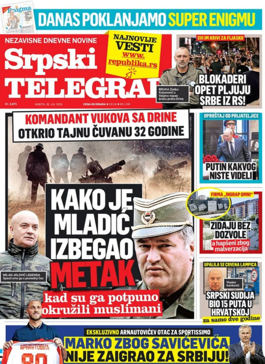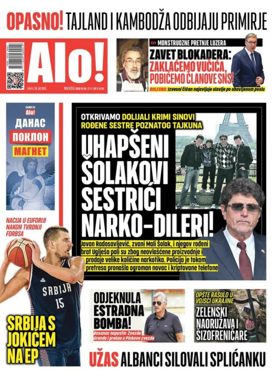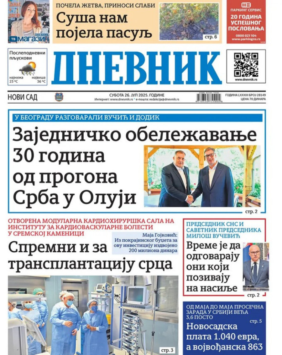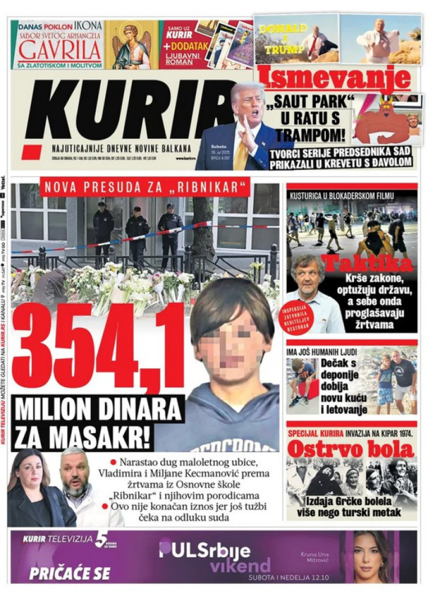 Dnevne novine u Srbiji za subotu 26. jul 2025. godine, na naslovnim stranama najavljuju brojne aktuelne društveno-političke teme.