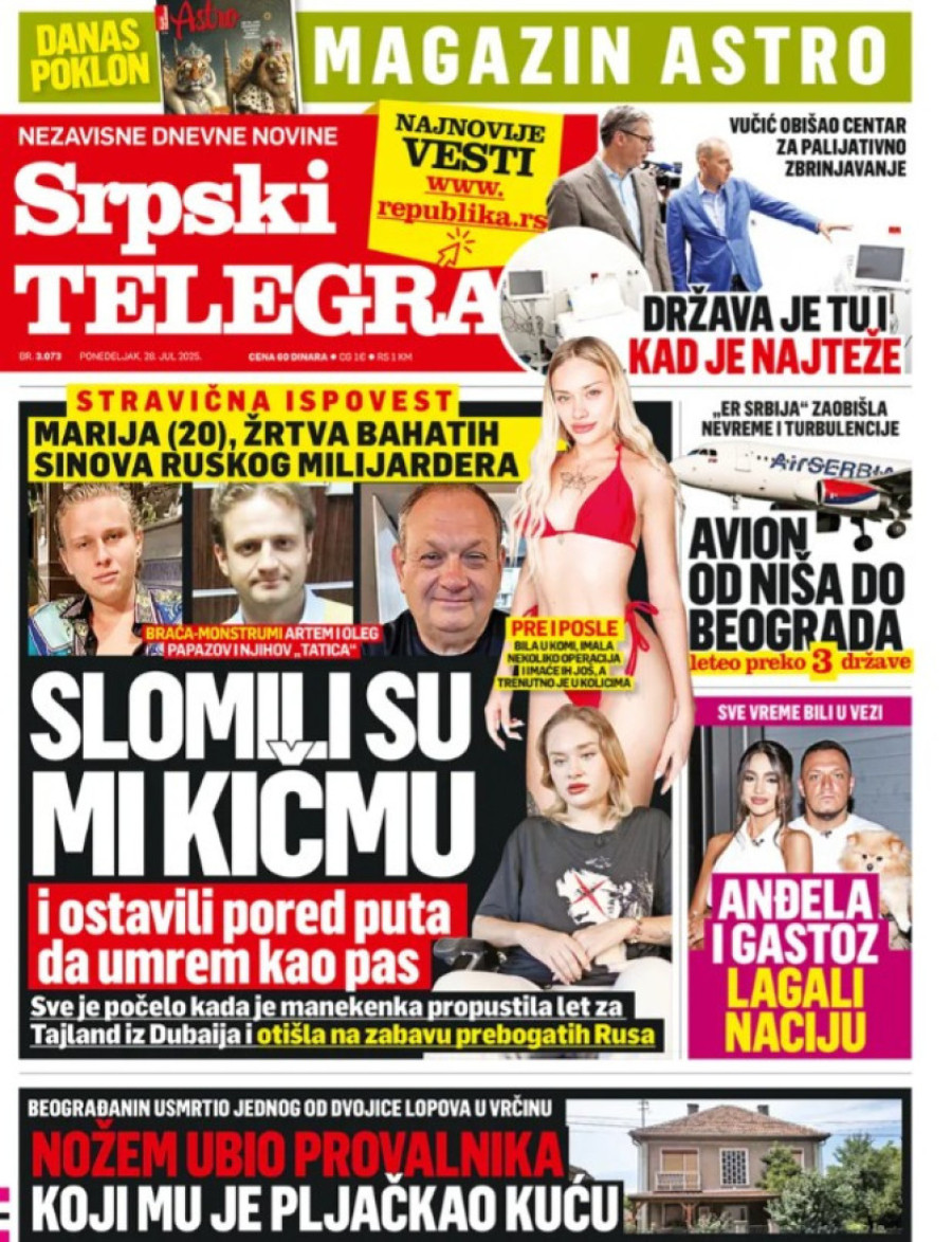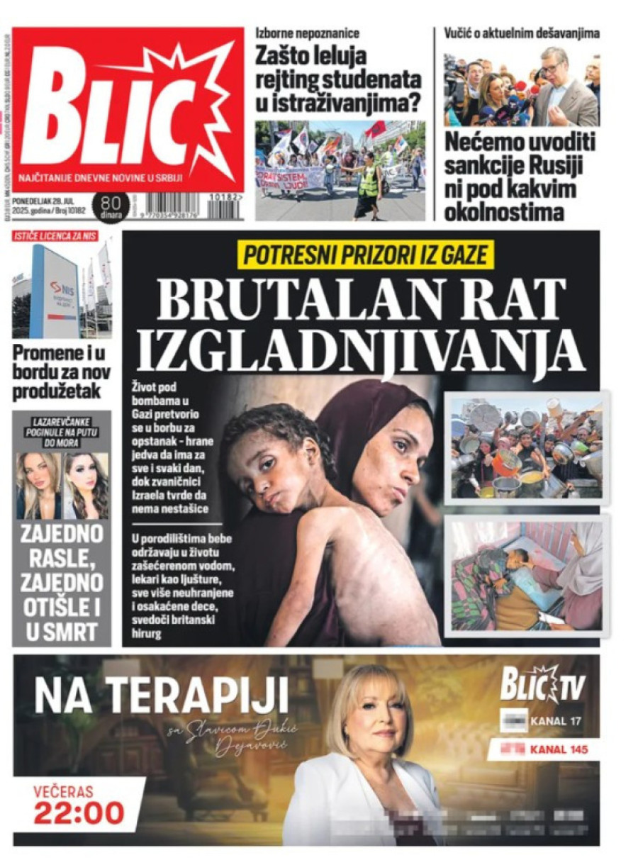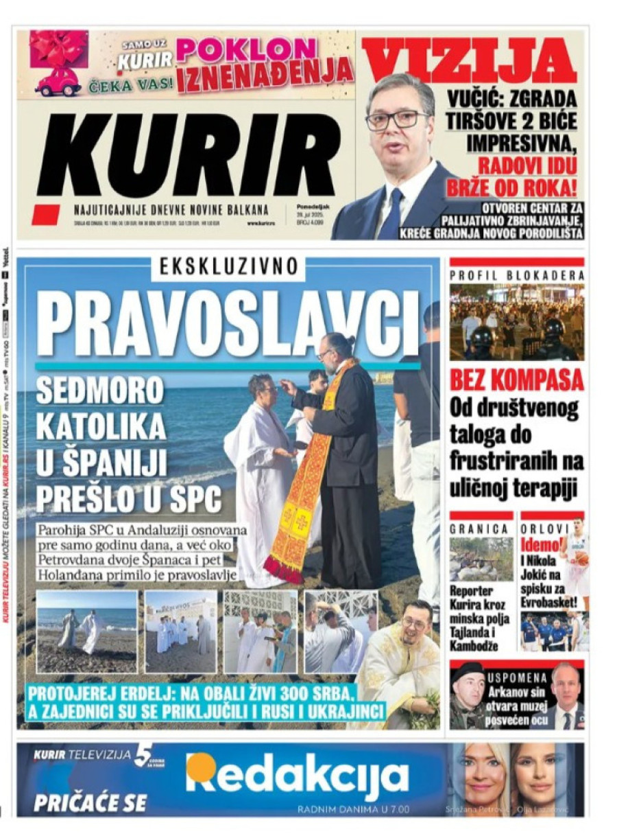 Dnevne novine u Srbiji za ponedeljak 28. jul 2025. godine, na naslovnim stranama najavljuju brojne aktuelne društveno-političke teme.