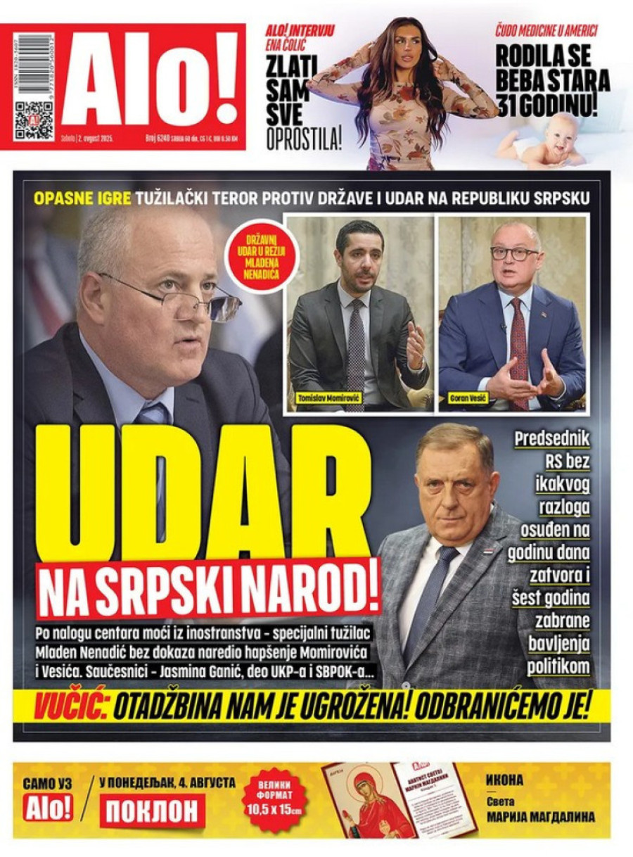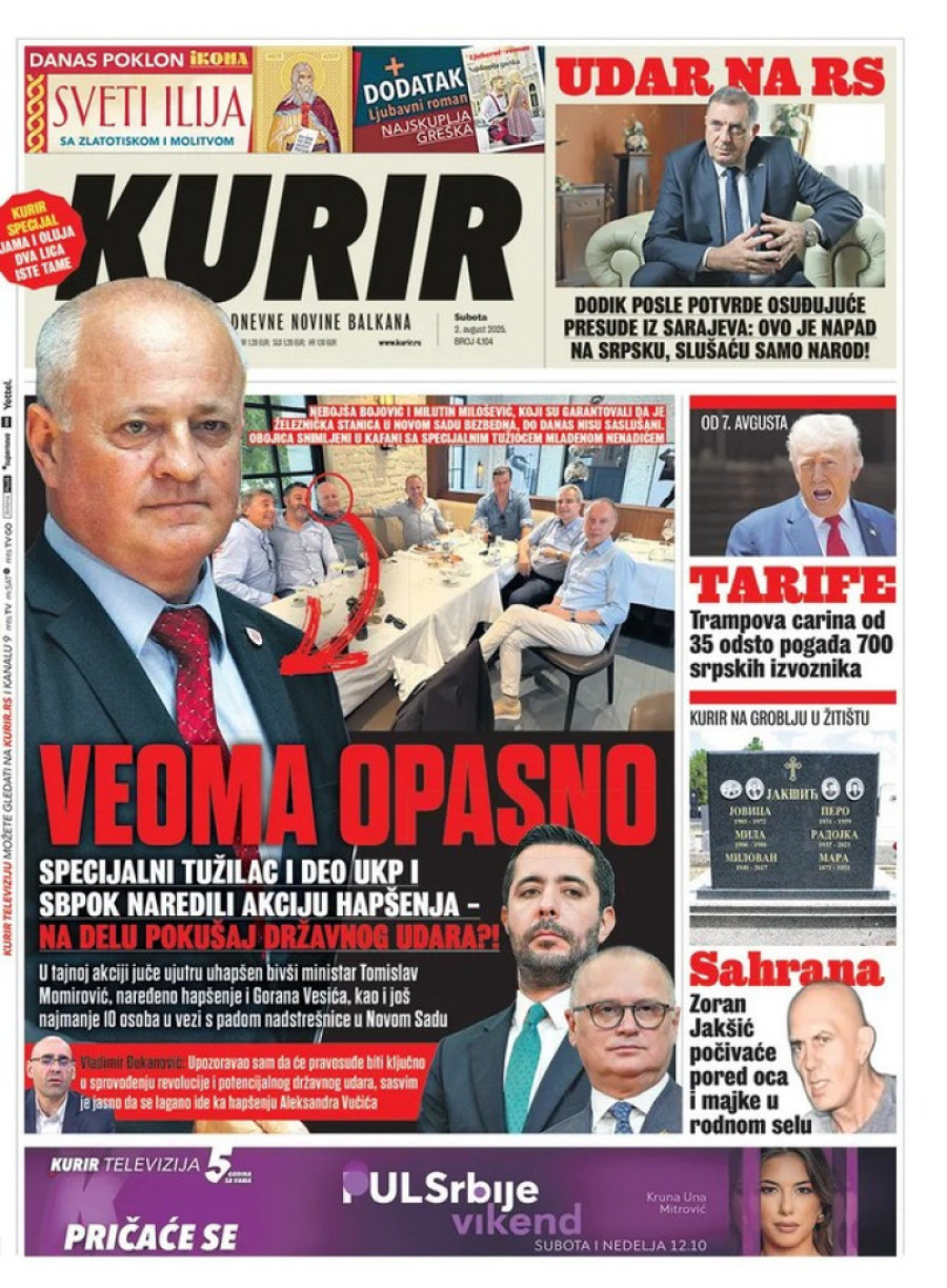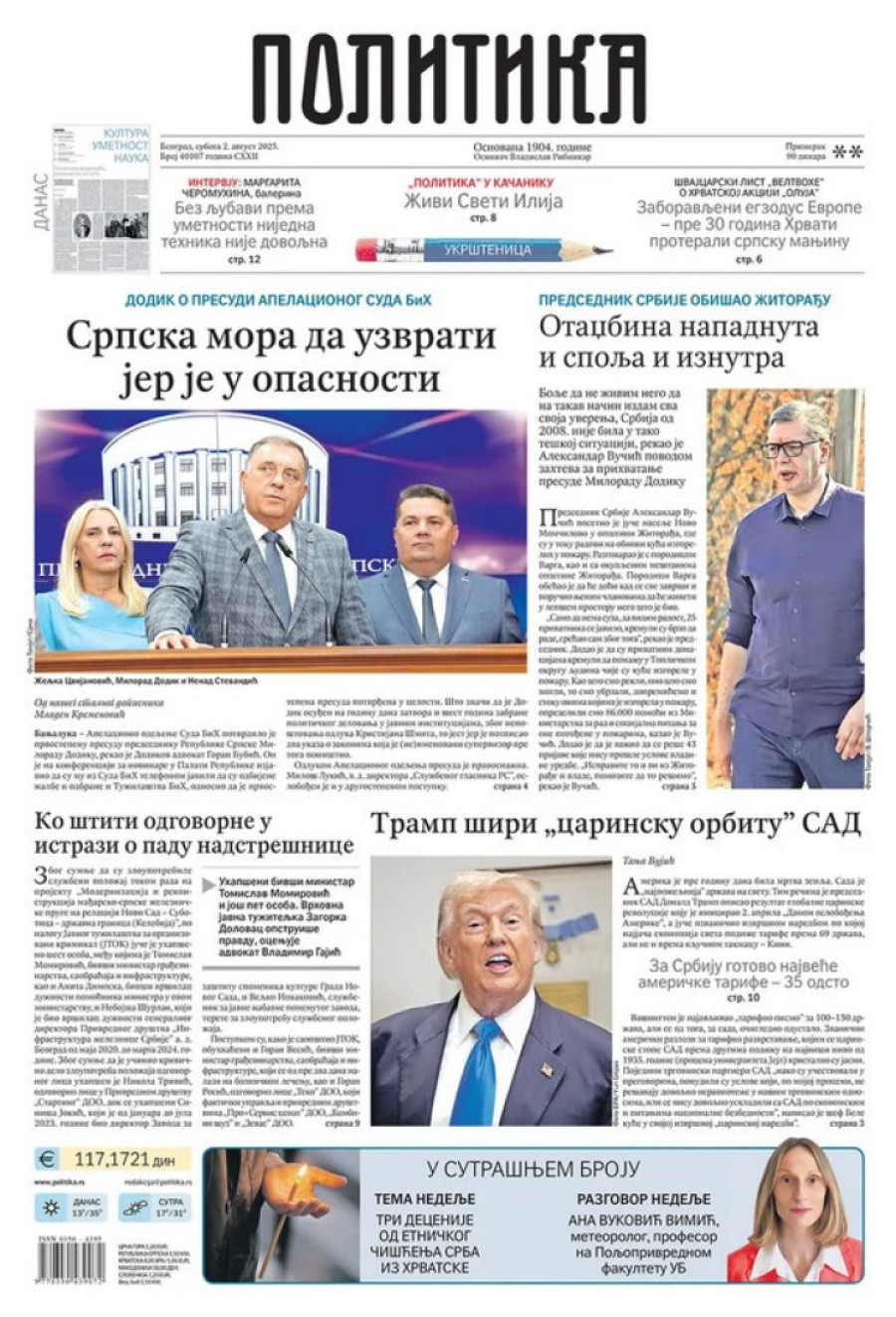 Dnevne novine u Srbiji za subotu, 2. avgust 2025. godine, na naslovnim stranama najavljuju brojne aktuelne društveno-političke teme.