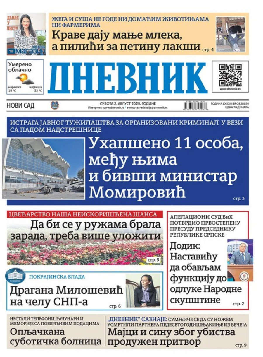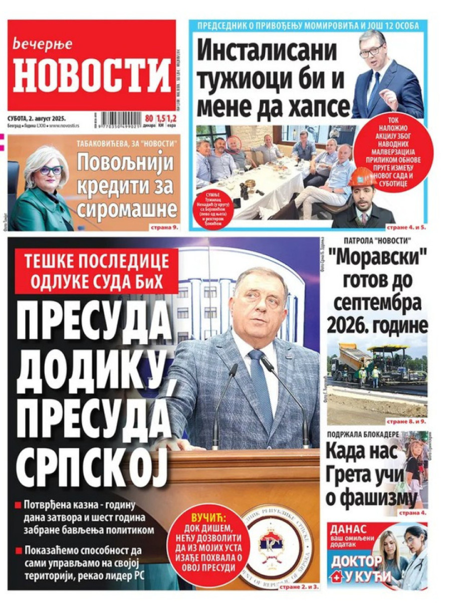 Naslovne strane dnevnih novina: Prelistavanje štampe za 2. avgust 2025. godine